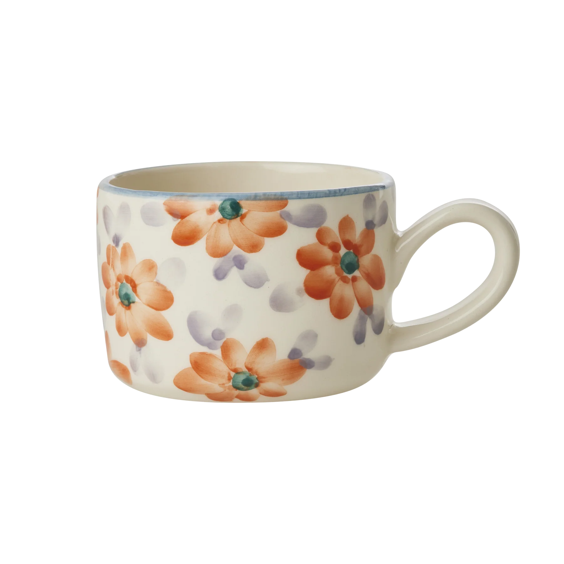 Upplev charmen med att njuta av din favoritdryck i en kopp som är lika unik som du. Denna handmålade cappuccinokopp från RICE ger färg och liv åt din morgonritual med sina vackra orange blommor. Varje kopp är skapad av begåvade portugisiska kvinnor, vilket betyder att inga två koppar är exakt likadana. Det är ett underbart sätt att ge ditt kök personlighet.