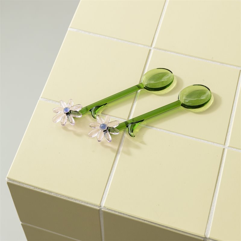 Blomglasskedarna ger en lekfull och färgglad dimension till varje bordsdukning. Varje sked är handgjord med omsorgsfullt placerade blommor och blad, vilket gör varje set till ett unikt konstverk som kan lysa upp din vardag.