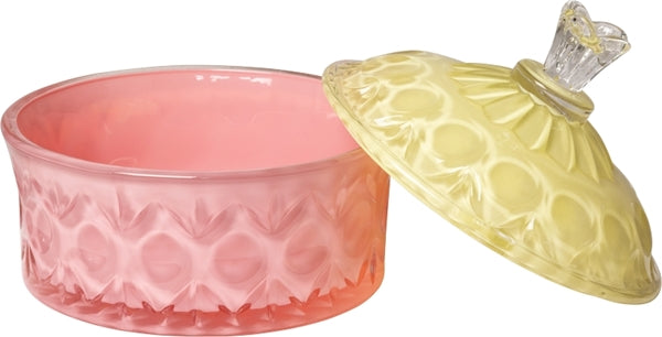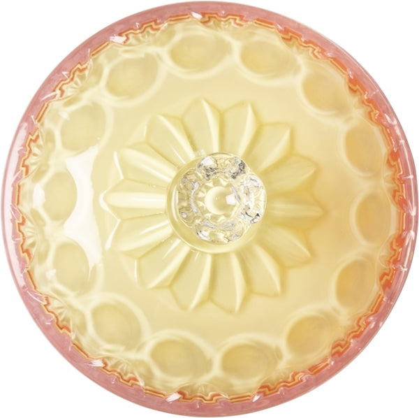 Giv dit hjem et lyst og legende pift med denne smukke bonbonniere fra Au Maison. Den pinke og gule farvekombination bringer glæde og liv til ethvert rum, og den fine glas krukke med låg er ideel til opbevaring af små skatte, slik eller som en dekorativ genstand.