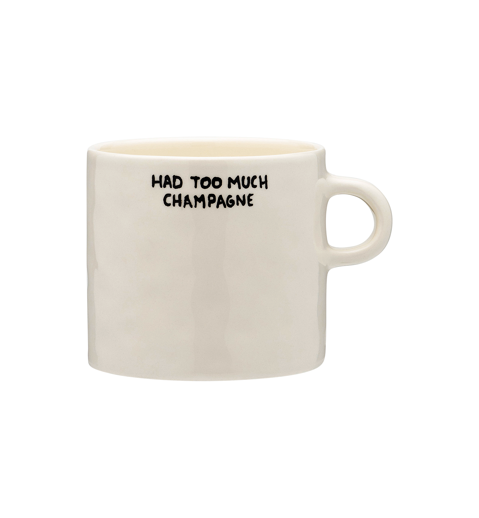 Too Much Champaign koppen fra Anna + Nina er en håndmalet skønhed, der tilføjer et strejf af festlighed til dine morgenstunder. Denne unikke keramikkop er ideel til dem, der ønsker at samle på smukke genstande og skabe en personlig samling.