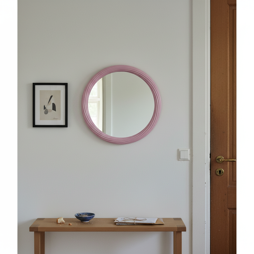 Förutom sin praktiska funktion som spegel fungerar denna design också som ett dekorativt element som kan förändra stämningen i ett rum. Den rosa färgen skapar en varm och välkomnande atmosfär, medan den lekfulla formen bidrar till en mer avslappnad och informell look i hemmet.