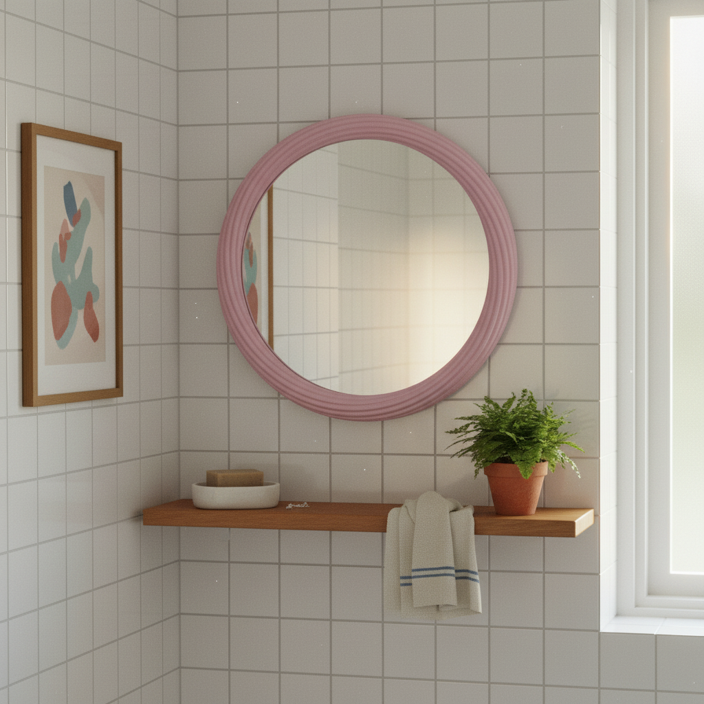 Denna rosa churros-spegel från Klevering kombinerar praktisk funktionalitet med lekfull design. De vågiga kanterna påminner om den populära desserten, medan den rosa färgen ger en fräsch och ungdomlig touch till din inredning.