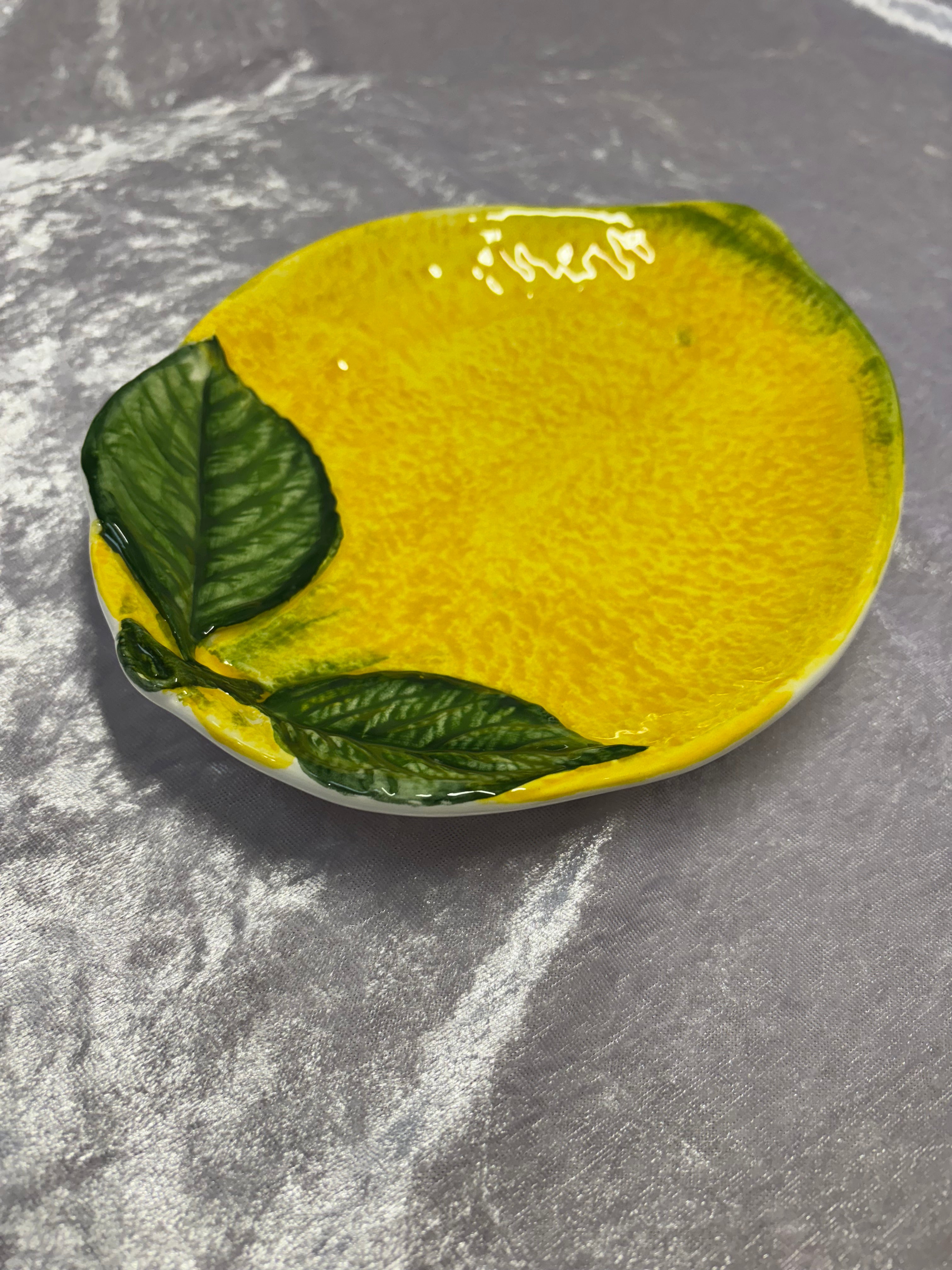 Upptäck den unika skönheten hos detta citronfat från Caja Company. Fatet, som mäter 18x24 cm, är handmålat och ger en livlig atmosfär till ditt kök eller vardagsrum. Med sina färgglada nyanser ger det en konstnärlig touch till vilken bordsdukning som helst.