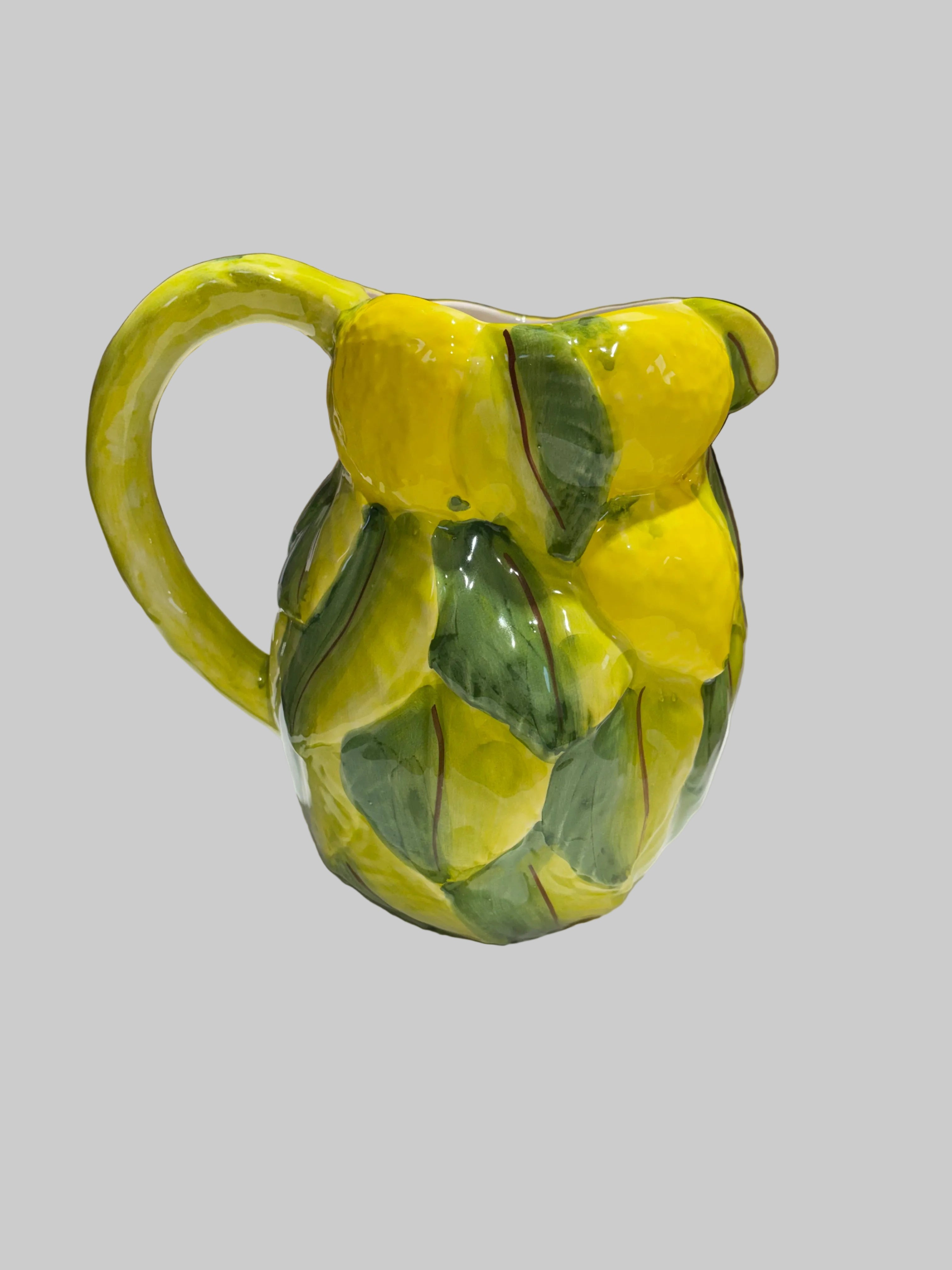 Oplev skønheden ved den håndlavede citronkande fra Selected by Dims Studio. Denne kande er ikke bare et køkkenredskab, men et kunstværk, der bringer liv og farve ind i dit hjem. Med sin håndmalede finish og unikke design med grønne blade, er hver kande et resultat af omhyggeligt håndværk, der fejrer italienske traditioner.
