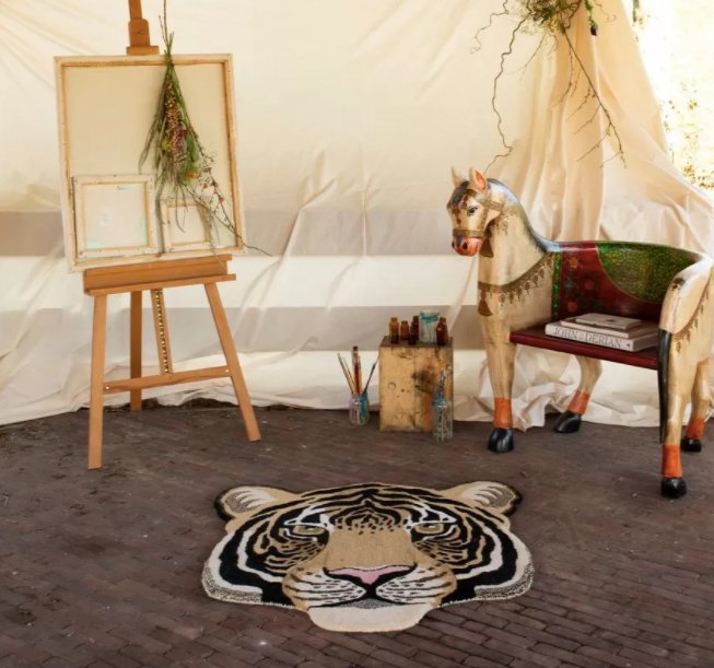 Den handvävda konstruktionen säkerställer att varje tigerhuvudmatta har sin egen unika karaktär. De många fina detaljerna i tigeransiktet ger mattan ett autentiskt utseende som tillför personlighet till rummet. Kombinationen av ull och bomull ger både hållbarhet och en behagligt mjuk yta.