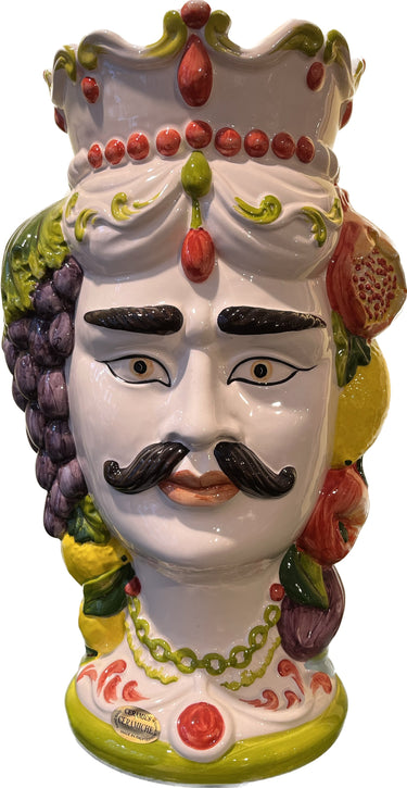 Dims Studio välkomnar den sicilianska Testa Di Moro-vasen till sortimentet. Den vackra vasen Testa Di Moro har sina rötter planterade bland de stolta italienska keramiktraditionerna. Testa Di Moro-vasen kan översättas till Moro-huvuden på danska, eftersom den unika vasen föreställer ett huvud. Moro-huvudena säljs vanligtvis i set om två, en äldre man och en vacker ung kvinna. Hos Dims säljs de dock separat. Den vackra Testa Di Moro-vasen döljer en verklig bit italiensk historia, som kretsar kring en romantisk berättelse, med teman kärlek och svek. De två vaserna är avsedda att representera mannen och kvinnan, som är huvudpersonerna i den sicilianska berättelsen. Den berömda berättelsen utspelar sig i den nuvarande sicilianska huvudstaden Palermo, där den första Testa Di Moro-vasen tillverkades. Tillverkaren bakom den vackra Testa Di Moro-vasen har funnits sedan 1965 och leds idag av en tredje generation. Tillverkarens slogan är "ingenting för mycket", vilket passar perfekt in i Dims Studios universum.