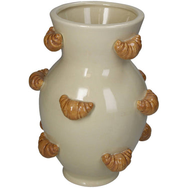 Denna vas med croissantdesign ger en lekfull och modern touch till alla inredningar. Den mjuka beige färgen i dolomitmaterial gör den till ett perfekt val för både köket och vardagsrummet, där den kan prydas med blommor eller stå ensam som ett vackert dekorativt föremål.