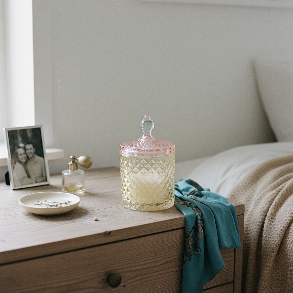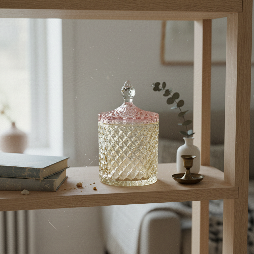 Burken kan användas i olika rum i hemmet. I badrummet är den idealisk för bomullspinnar och små toalettartiklar, i köket för kryddor eller kex, och i vardagsrummet eller sovrummet fungerar den bra för förvaring av smycken eller andra små föremål som förtjänar en dekorativ plats.