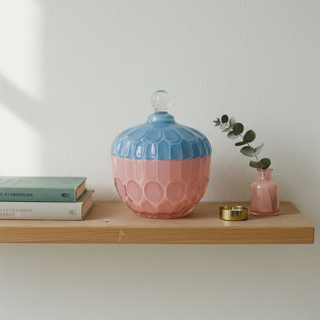 Snygg förvaringsburk i rosa och blå nyanser