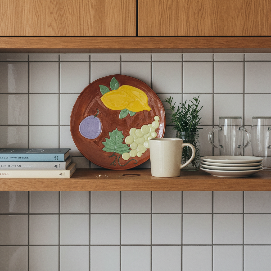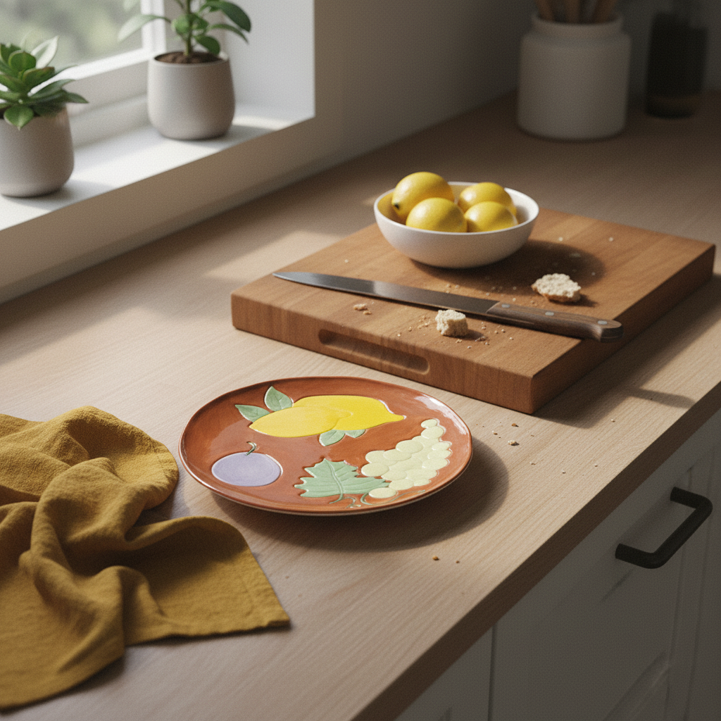 Fruktfatet kombinerar praktisk funktionalitet med ett konstnärligt uttryck. Den färgglada fruktmotivet i bakgrunden ger en livfull touch till din servering, medan den plana ytan säkerställer en stabil presentation av dina rätter. Tallriken är idealisk för både vardagsbruk och speciella tillfällen när du vill tillföra ett konstnärligt inslag till din dukning.