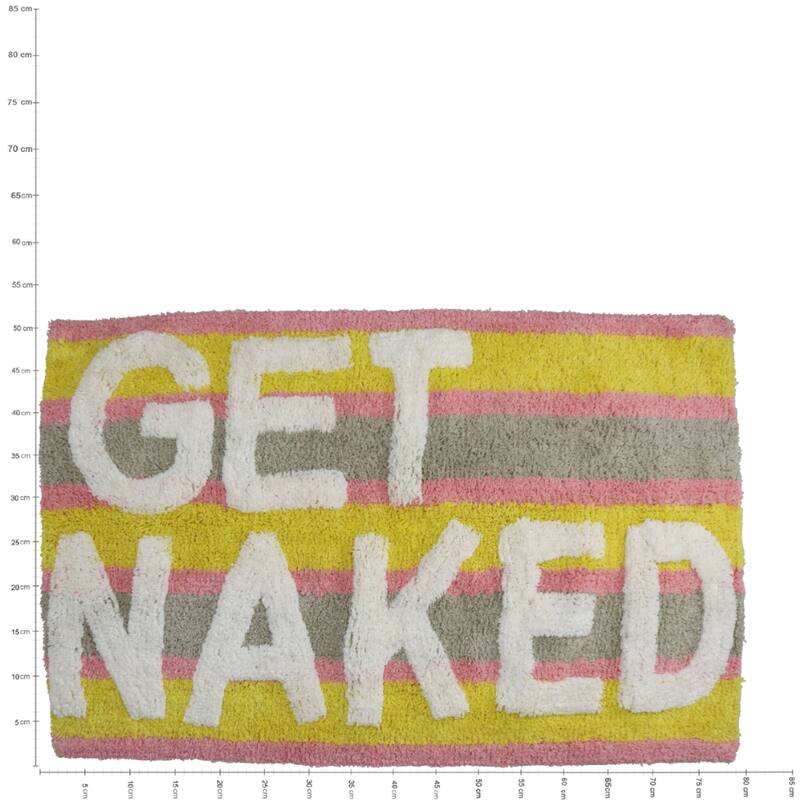 Giv dit badeværelse et livligt og humoristisk touch med denne farverige Naked måtte fra Kersten. Måtten måler 50x80 cm og har det sjove budskab ""Get Naked"", der helt sikkert vil få smil frem hos både familie og venner.