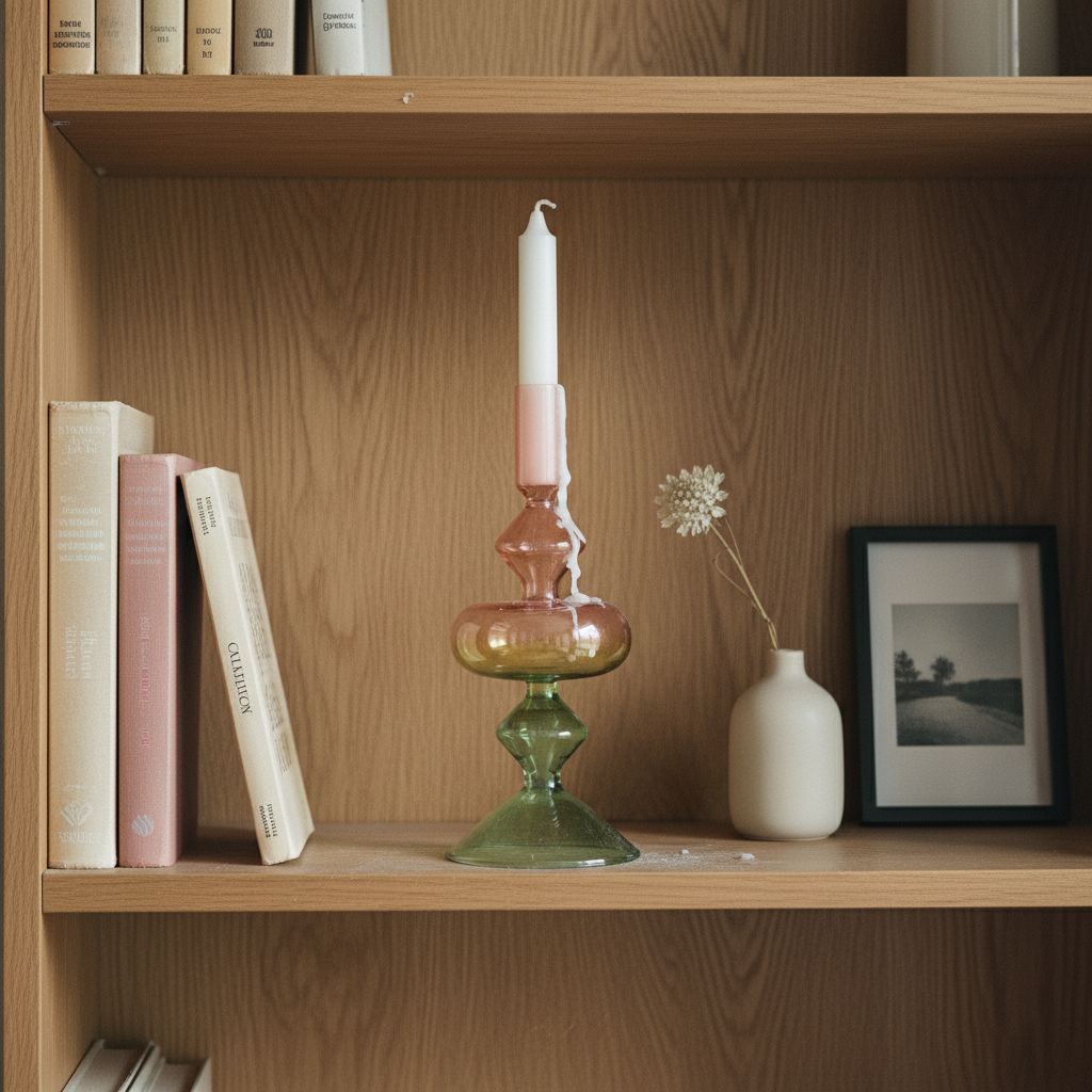 Färgglad ljusstake i glas ger liv åt din inredning