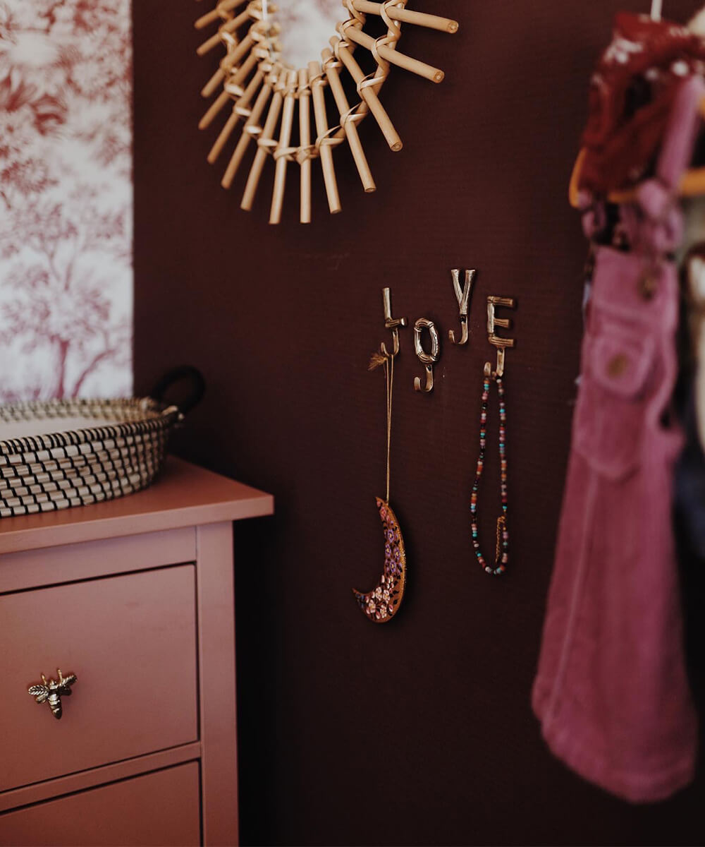 Denna vackra klädhängarset Love från Doing Goods är handgjord av återvunnen mässing med en elegant bambulook. De fyra individuella bokstäverna ger varje person i hemmet sin egen krok, vilket skapar både ordning och personlighet i hallen eller garderoben.