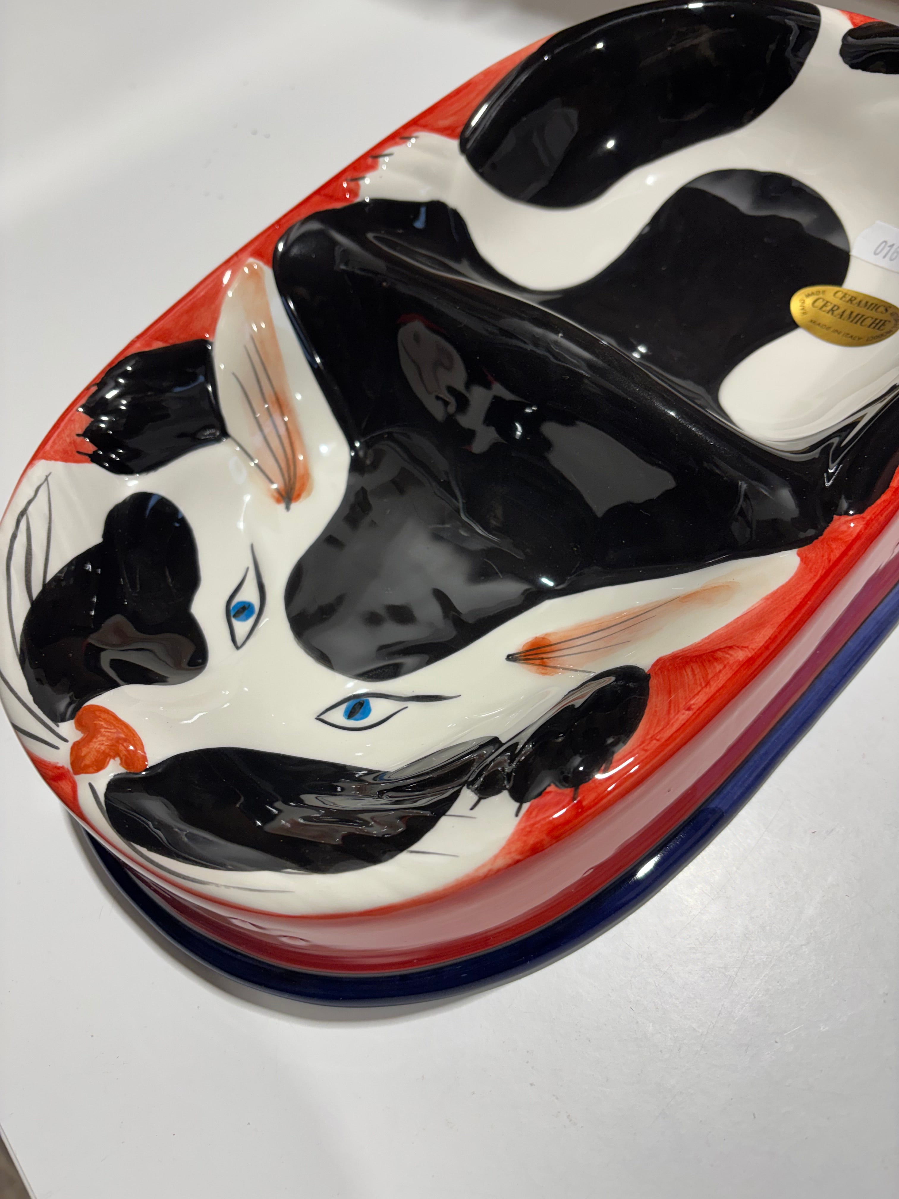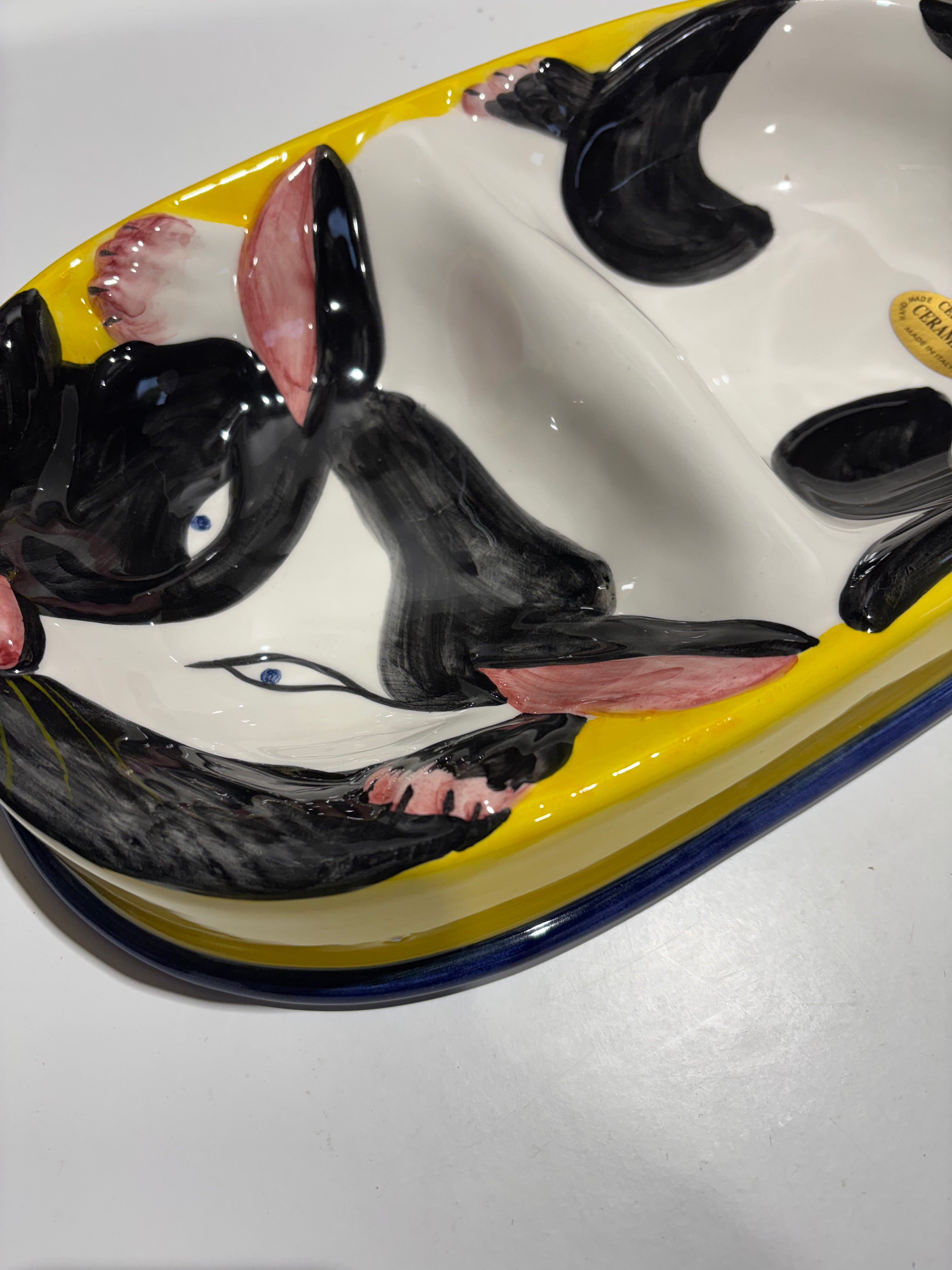 Giv din kat et unikt måltid med denne håndlavede dobbelt katte skål fra Selected by Dims Studio. Skålen er ikke kun praktisk, men også et smukt kunstværk til dit hjem. Hver skål er håndmalet med sin egen farvekombination, hvilket gør den til et helt særligt stykke italiensk keramik.