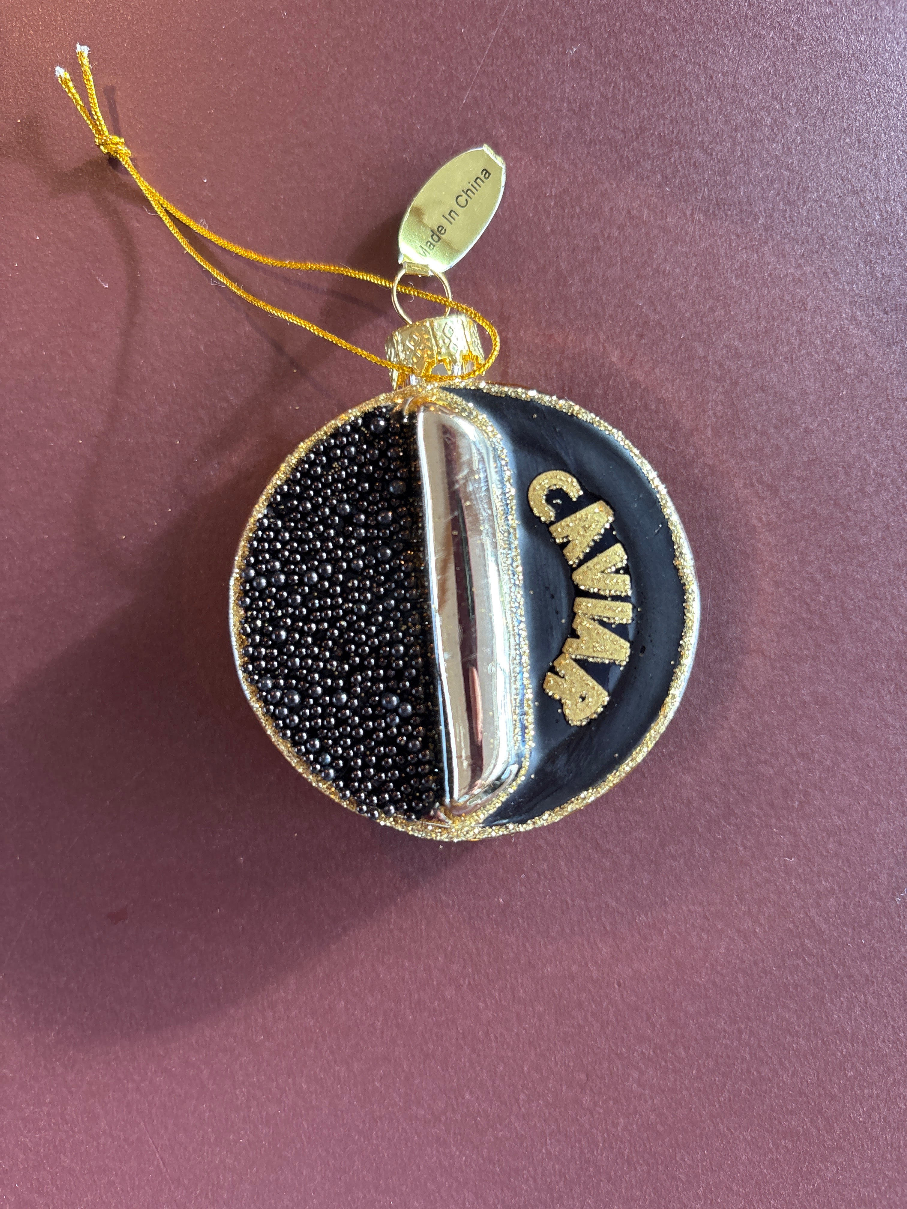 Den handmålade kaviarprydnaden kombinerar lyx med lekfullhet. Med sin kompakta storlek på 5,7 cm i höjd kan den enkelt integreras i olika dekorativa sammanhang, oavsett om den hänger i julgranen eller står ut som ett konstnärligt inslag i din inredning.