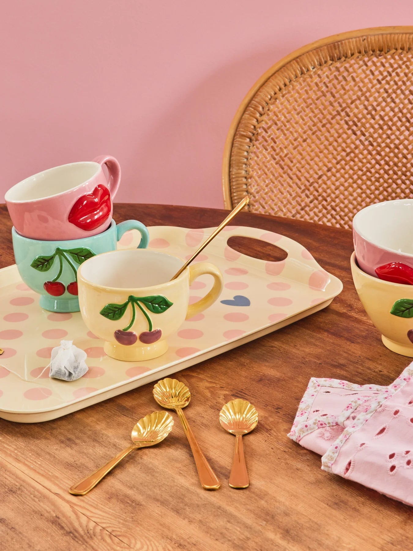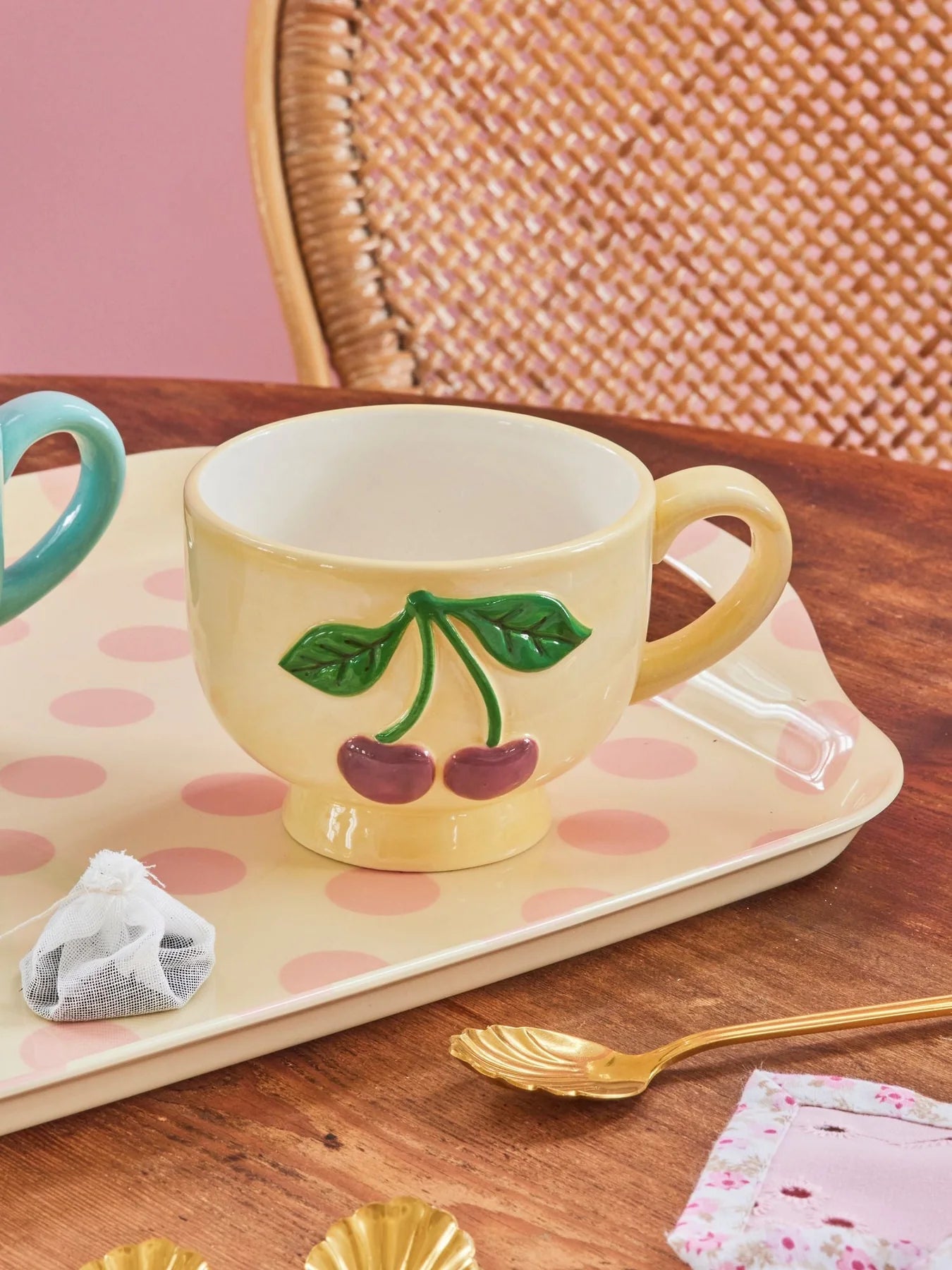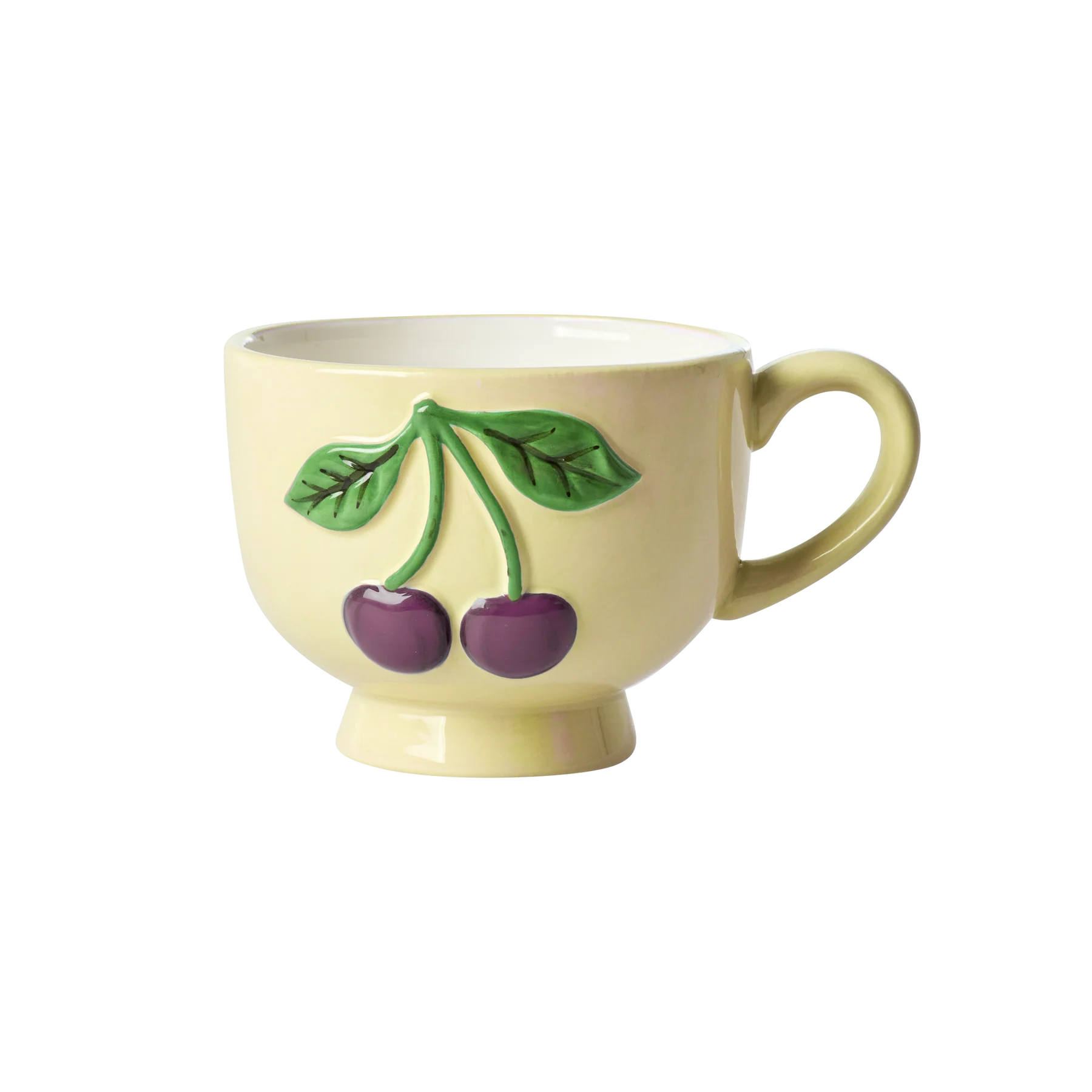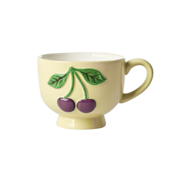 Upplev glädjen av att njuta av din favoritdryck i denna vackra, krämfärgade keramikmugg prydd med solmogna körsbär. Denna mugg är inte bara en fröjd för ögonen, utan också ett praktiskt tillskott i din vardag. Den är perfekt för te, snacks eller som en dekorativ förvaringslösning för småsaker.