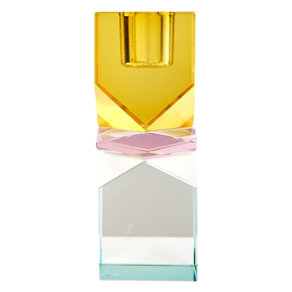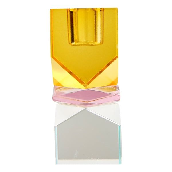 Förvandla ditt hem med denna charmiga kristallljusstake i nyanser av gult, rosa och ljus mint. Den unika färgkombinationen ger ett livligt och modernt intryck i alla rum, och dess kompakta storlek gör den perfekt för både små och stora utrymmen.