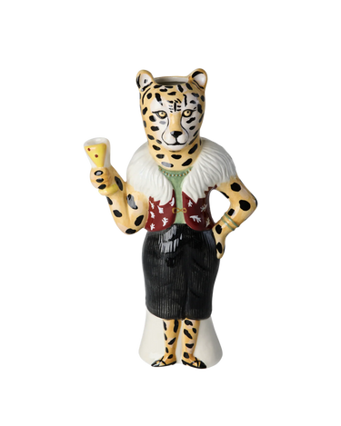 Oplev den fortryllende leopard vase fra Nathalie Lété i samarbejde med Rice. Denne unikke vase, der tager form som en cocktail-drikkende leopard, tilføjer et sjovt og farverigt element til dit hjem. Med sin karakteristiske stil vil den være et blikfang i ethvert rum, uanset om den pryder stuen eller vindueskarmen.