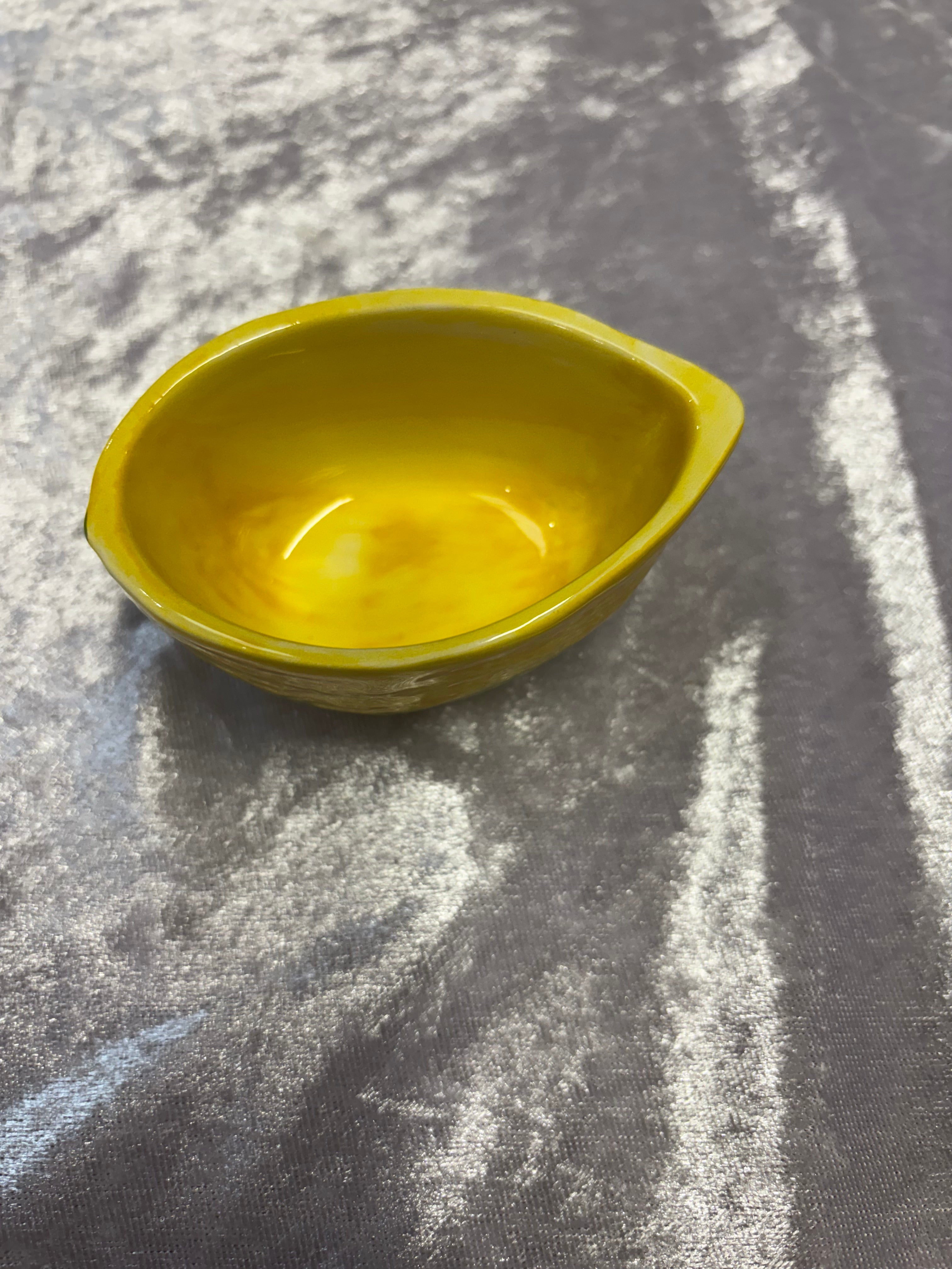 Den lilla citronskålen från Caja Company ger ditt hem en touch av elegans. Handmålad italiensk keramik gör varje skål unik, och färgerna kan variera, vilket ger den en personlig touch. Denna skål är perfekt för att förvara salt eller för att gömma dina favoritsmycken i badrummet.