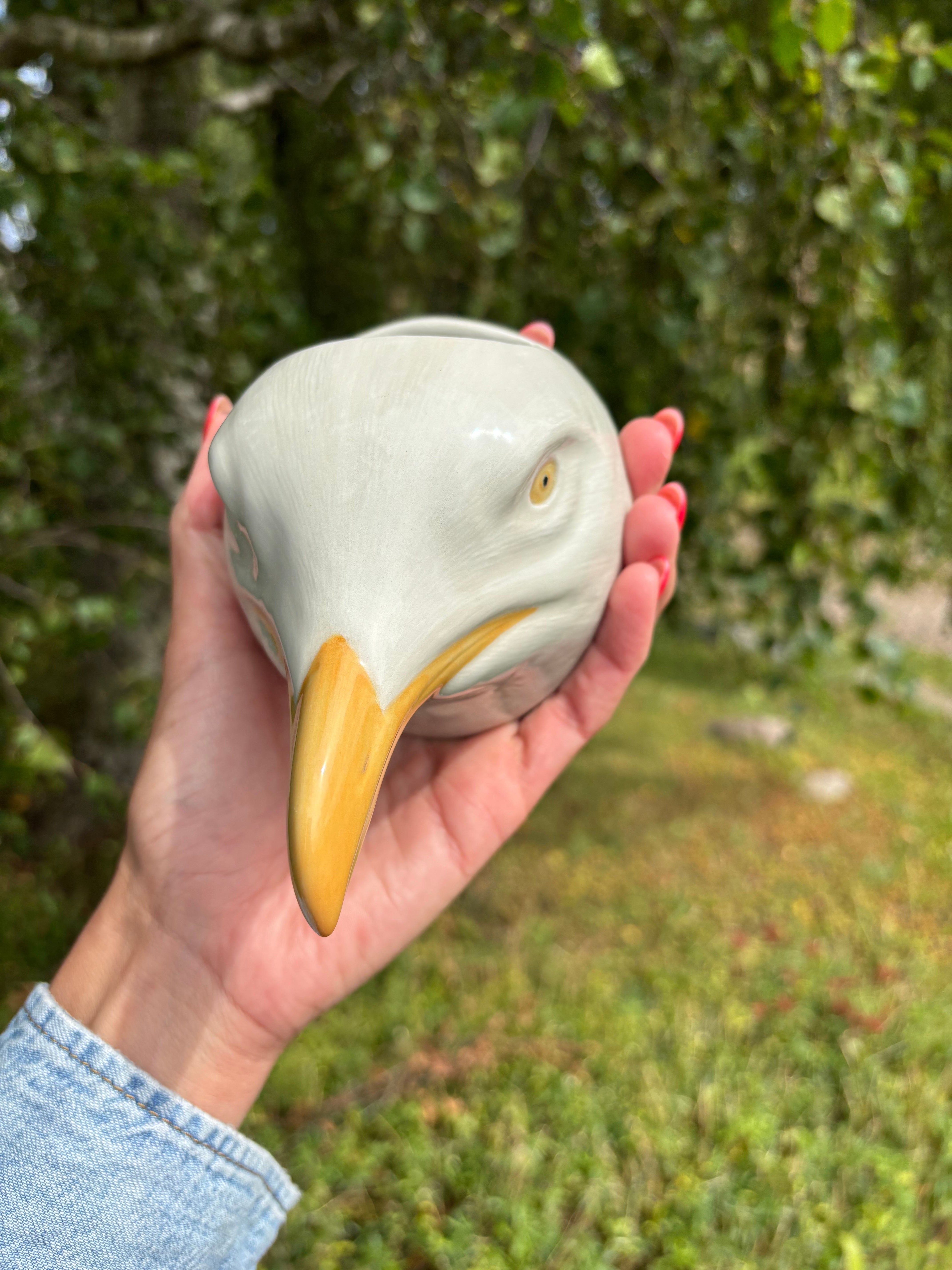 Väggvasen Seagull från Quail är ett dekorativt inredningselement i handmålat stengods. Den charmiga vasen i form av en mås har en höjd på 10,5 cm och fungerar som en konstnärlig väggbonad, samtidigt som den ger plats för små blommor eller växter.