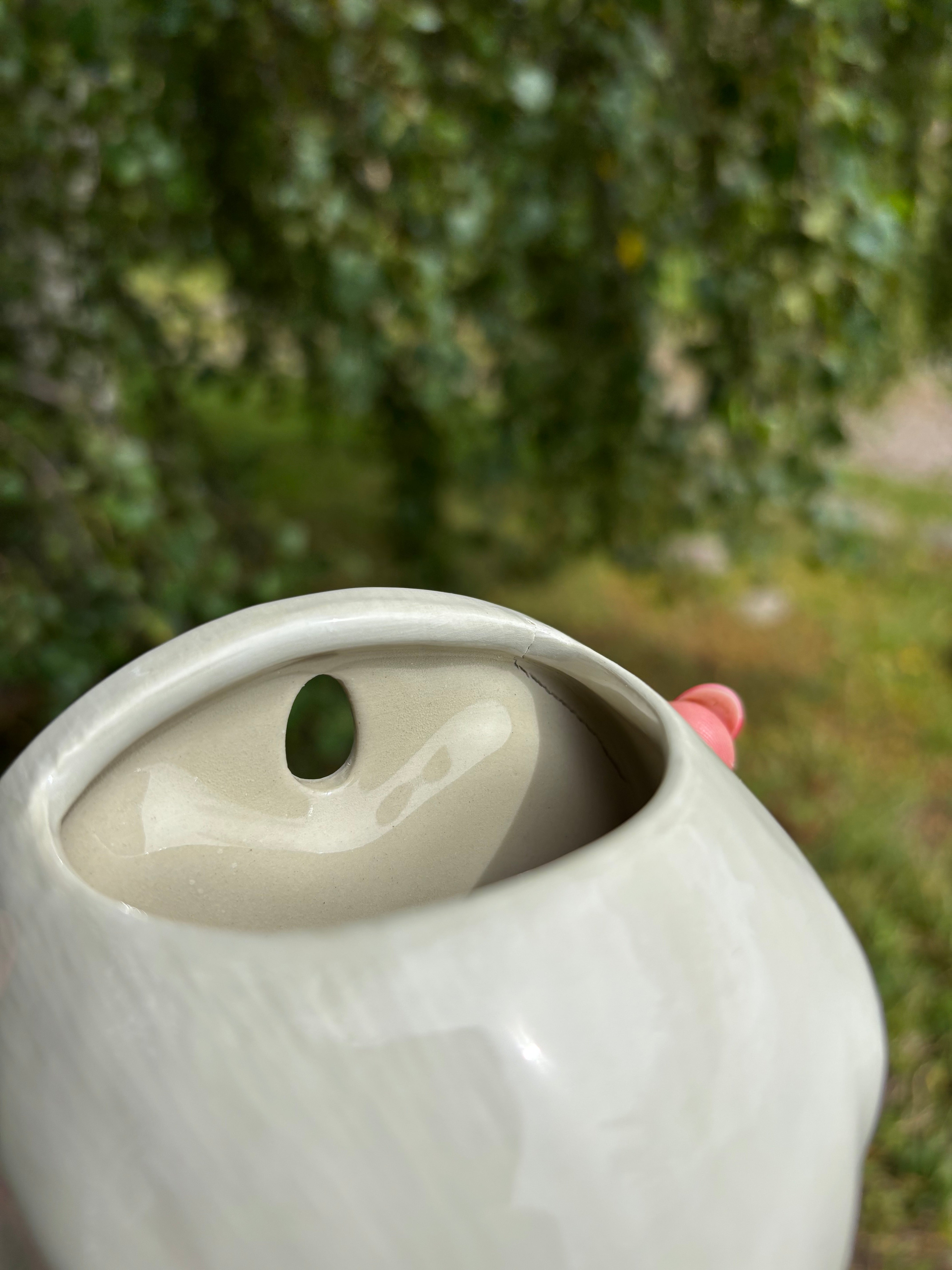 Den handmålade stengodsvasen ger ditt hem en personlig touch med sin unika karaktär. Eftersom vasen är handmålad kan små färgvariationer förekomma, vilket gör varje möbel unik. Väggfästet gör den till ett annorlunda alternativ till traditionella vaser och skapar ett intressant visuellt element på din vägg.