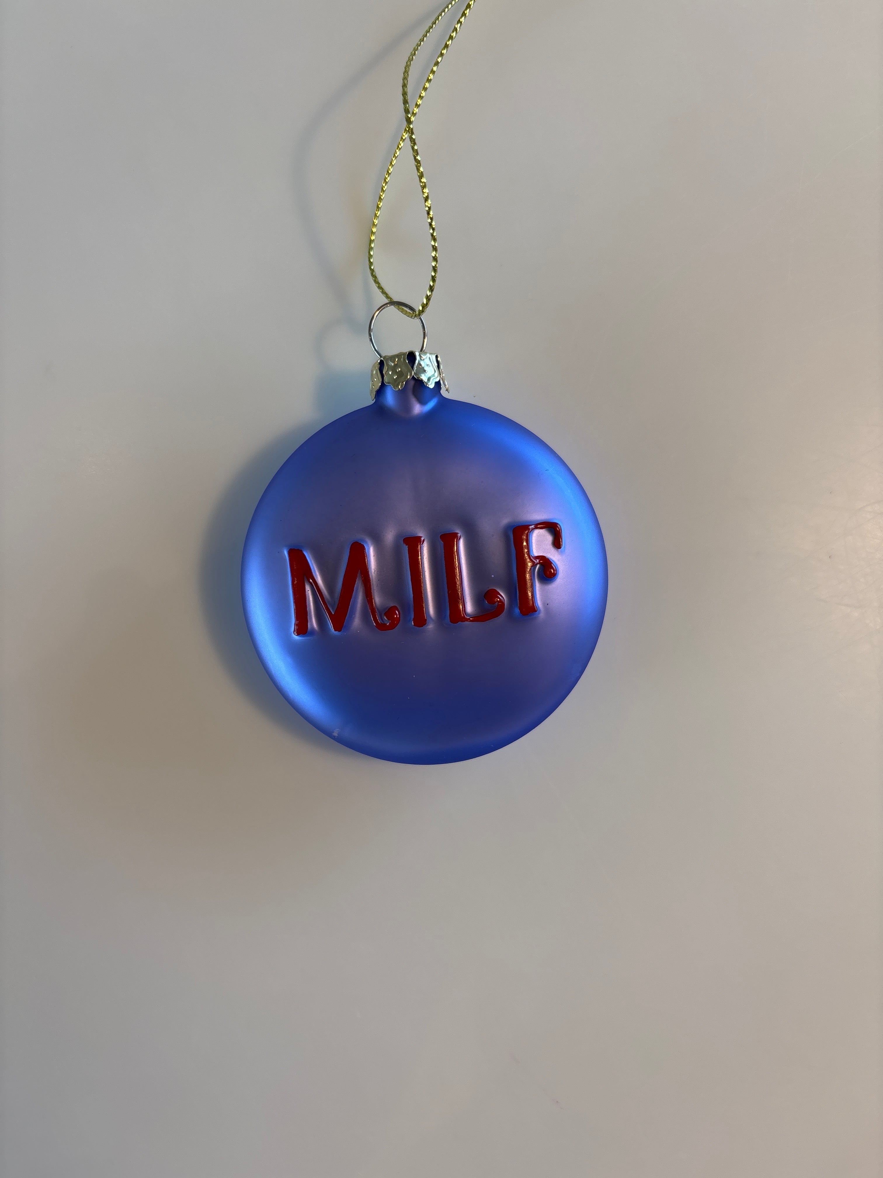 Förutom att vara en traditionell juldekoration kan MILF-prydnaden användas som en rolig present till en speciell kvinna i ditt liv eller som ett humoristiskt tillskott till din inredning året runt. Den kompakta storleken gör den enkel att placera på hyllor, fönsterbrädor eller på väggen.