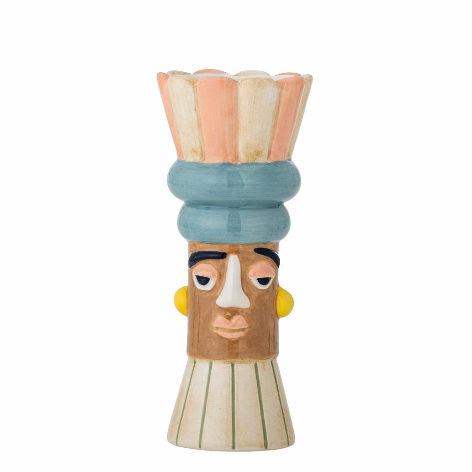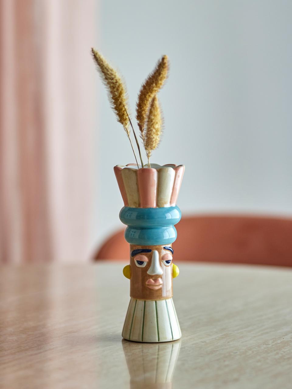 Minio-vasen från Bloomingville ger ditt hem en unik och konstnärlig touch. Den skulpturala, blominspirerade toppen och den karaktärsfulla framsidan gör den till en riktig samtalsstartare. Handmålad i mjuka rosa och dämpade nyanser skapar den ett lekfullt och uttrycksfullt element i vilket rum som helst.