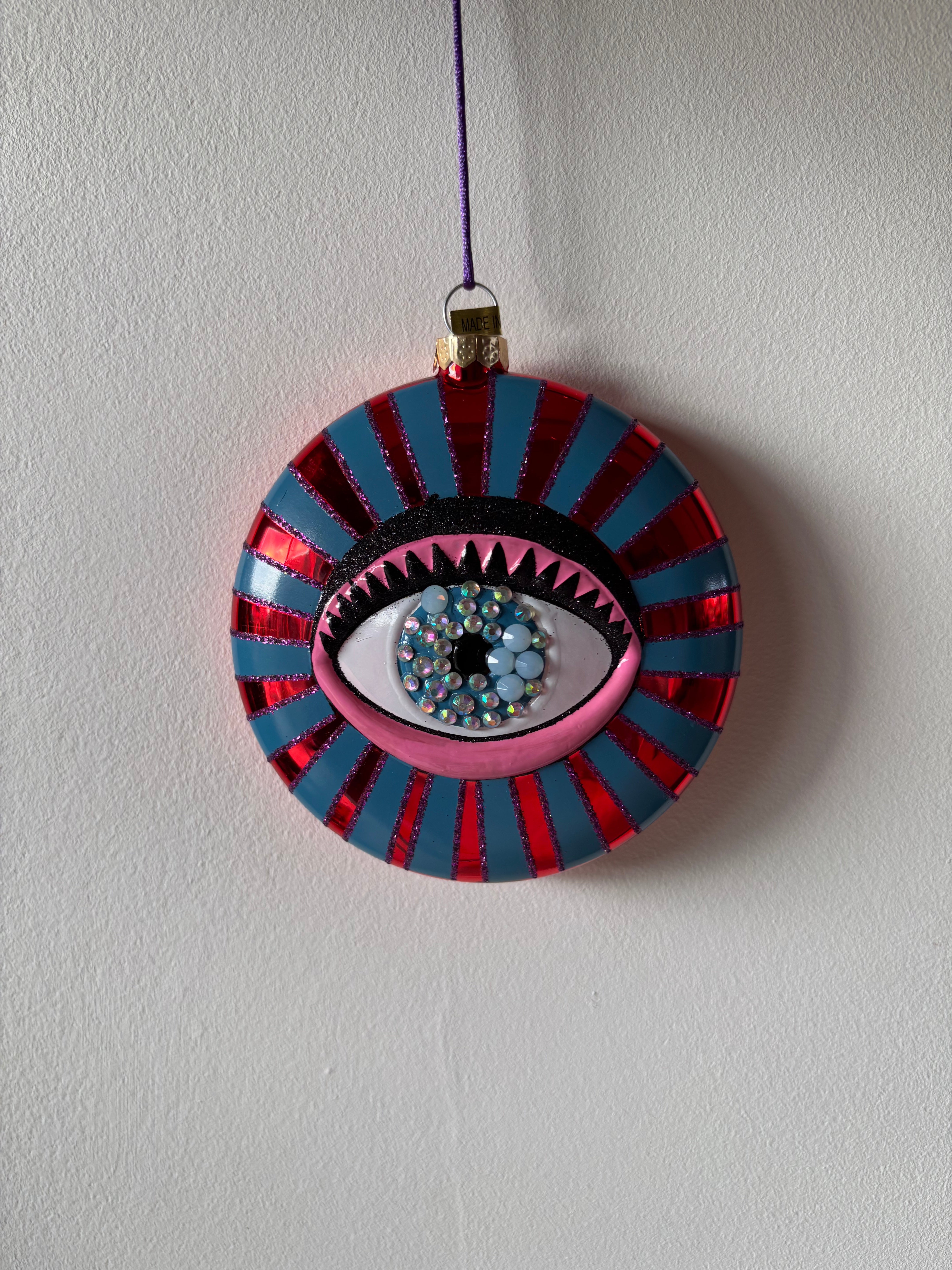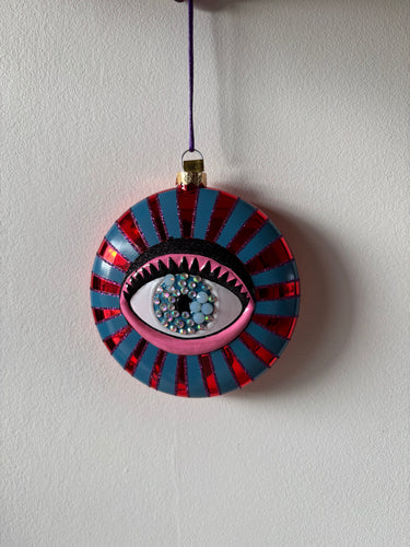 Fineste julekugle med et smukt øje. På bagsiden er den rød.