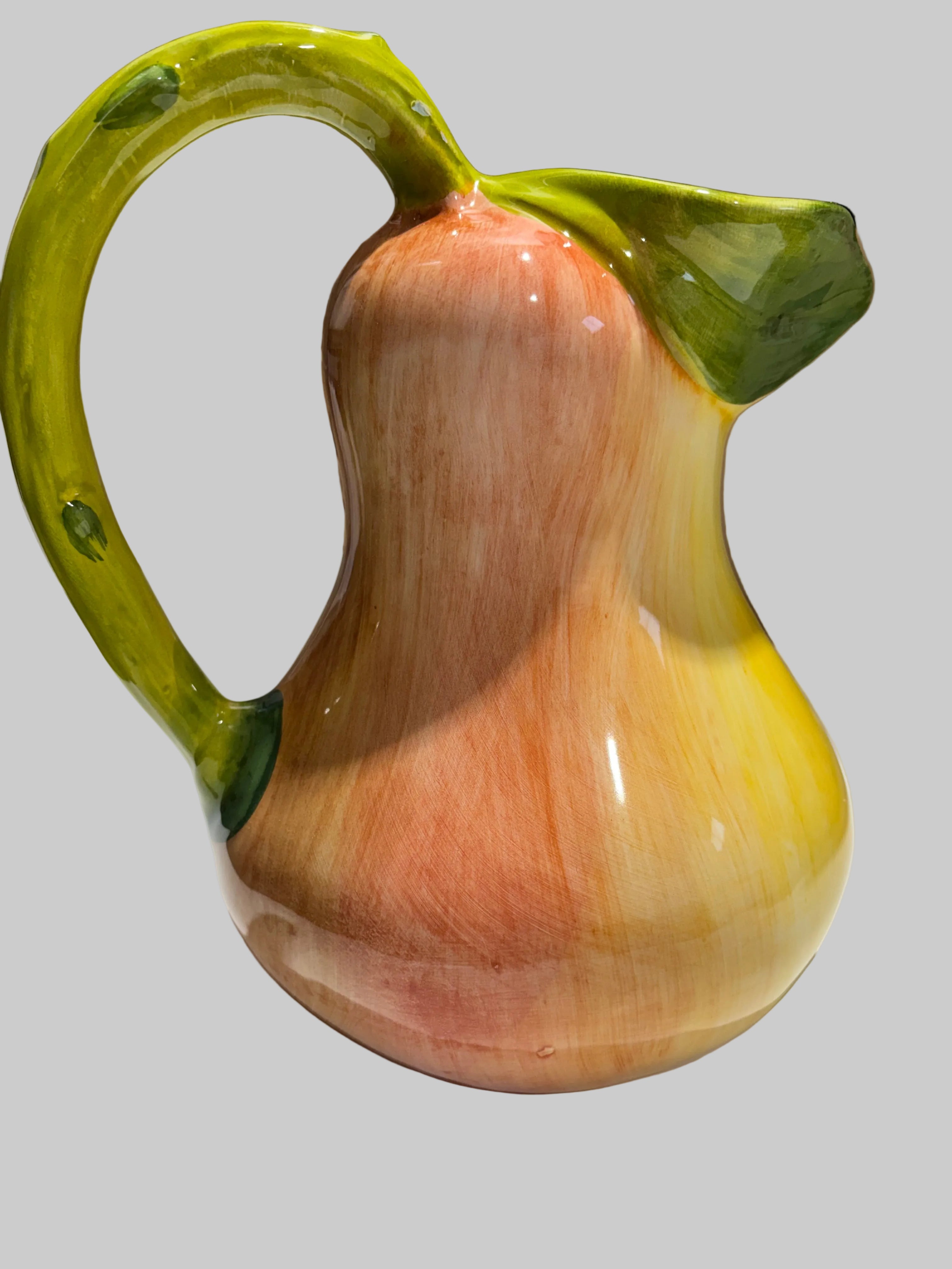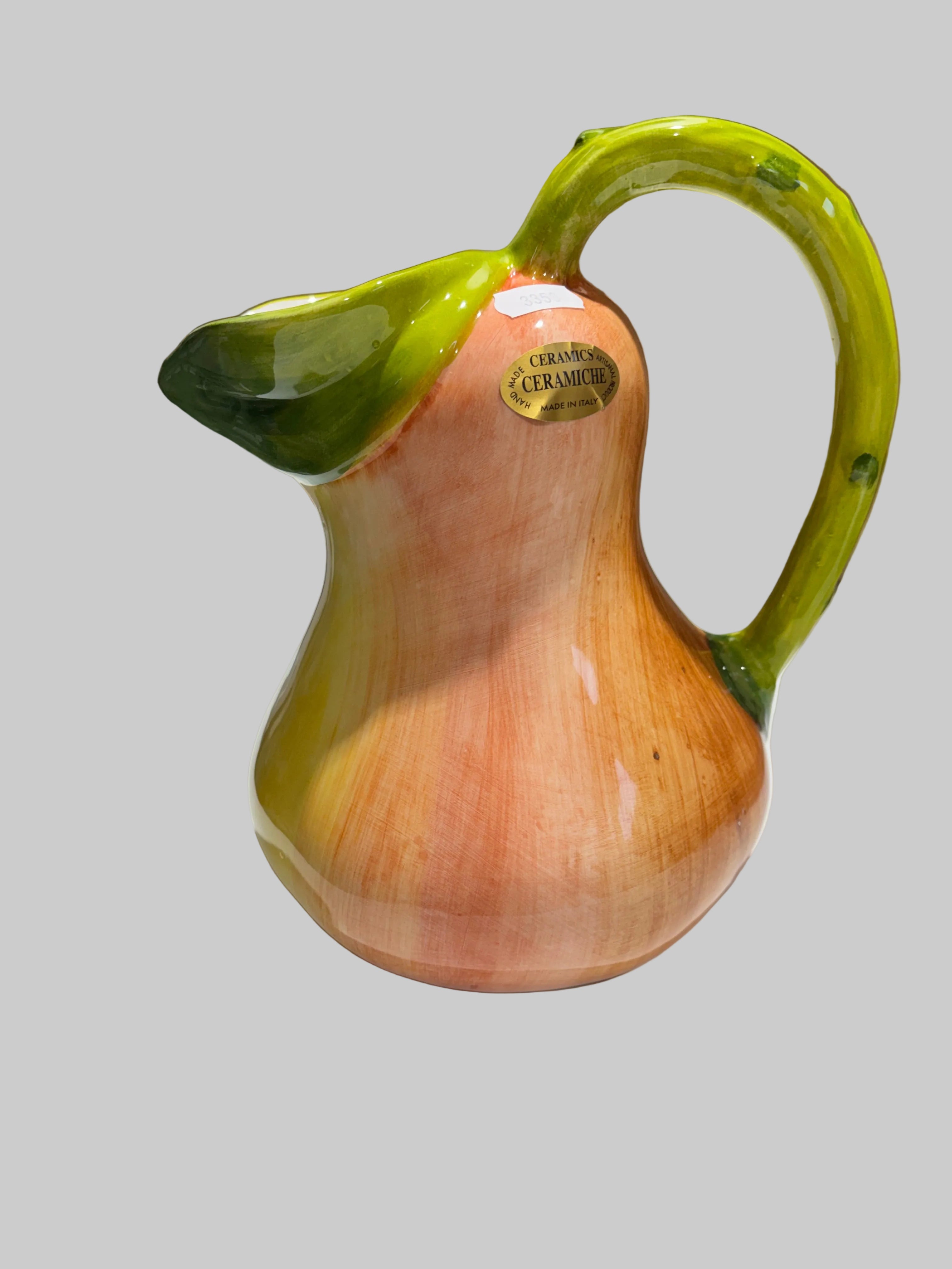 Oplev skønheden ved italiensk håndværk med denne betagende pære kande fra Selected by Dims Studio. Hver kande er et unikt kunstværk, håndlavet og håndmalet af dygtige kunsthåndværkere, hvilket sikrer, at ingen kande er den samme. Den legende pæreform tilføjer et sjovt og dekorativt element til din indretning.