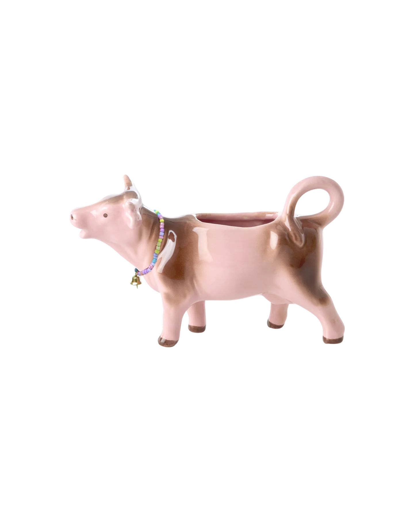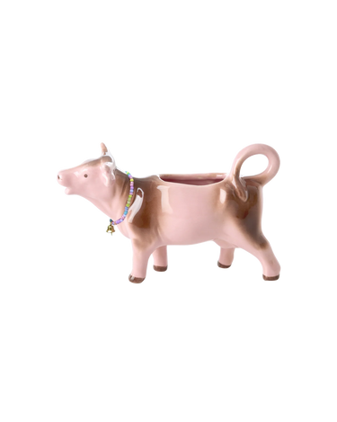 Denna söta mjölkkanna från Rice är formad som en rosa ko och ger ett lekfullt inslag till ditt soffbord. Den vintageinspirerade keramikkannan har en praktisk kapacitet på 125 ml, vilket gör den idealisk för att servera mjölk eller grädde till kaffe och te. Kannan är tillverkad av handgjord keramik med en karaktärsfull glasyr.