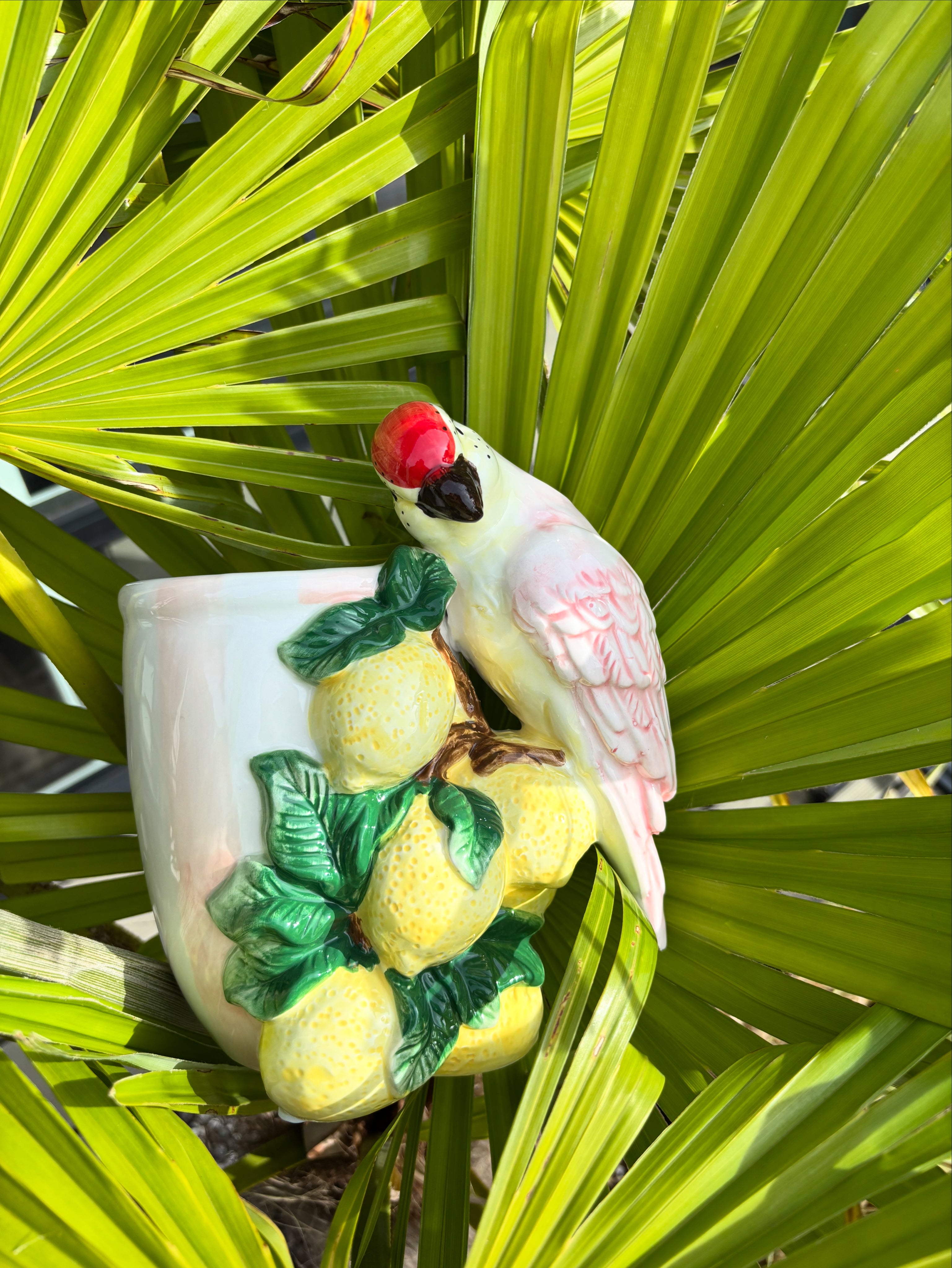 Ge dina växter ett lekfullt och färgglatt hem med denna rosa randiga kruka från Kersten. Den är formad som en fågel och dekorerad med citroner, vilket skapar en unik och iögonfallande dekoration för ditt rum.