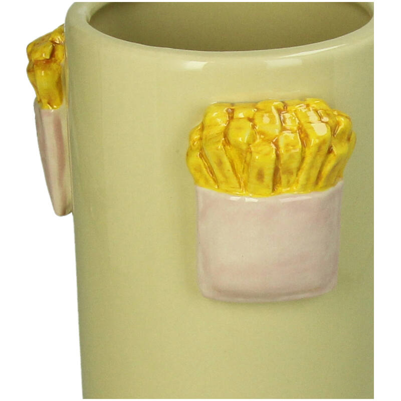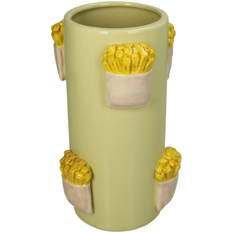 Pomfrit-vasen från Kersten är det perfekta sättet att ge din inredning färg och glädje. Denna unika vas har formen av en portion pommes frites och ger en lekfull känsla till vilket rum som helst. Oavsett om du använder den till blommor eller som ett dekorativt föremål, kommer den garanterat att dra till sig uppmärksamhet.