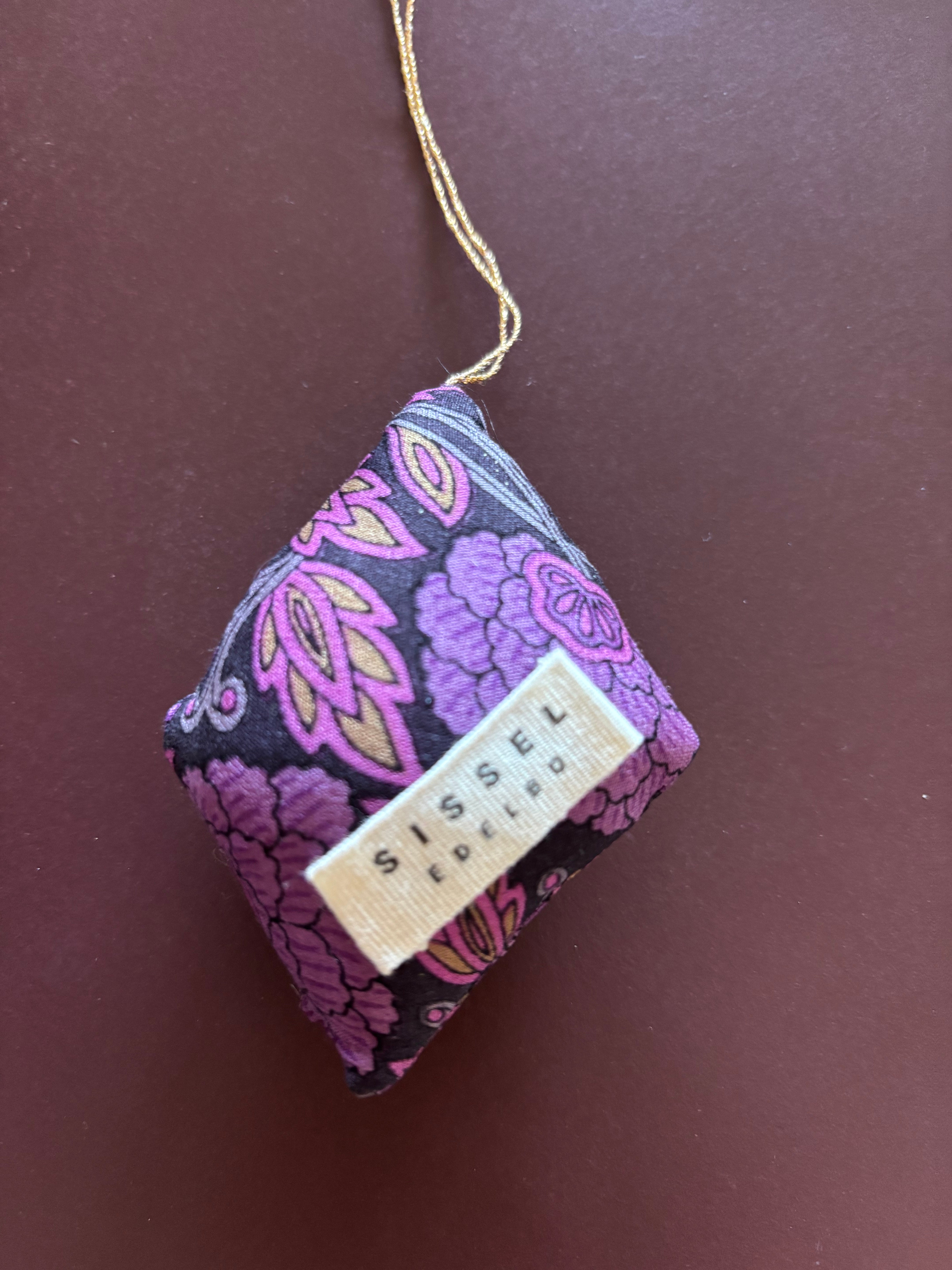 Dette smukke Rhomb silkeornament fra Sissel Edelbo er en perfekt tilføjelse til din juleudsmykning eller som en dekorativ detalje i dit hjem. Håndlavet af rester fra silkesaris, bringer det et strejf af indisk kultur ind i dit liv.