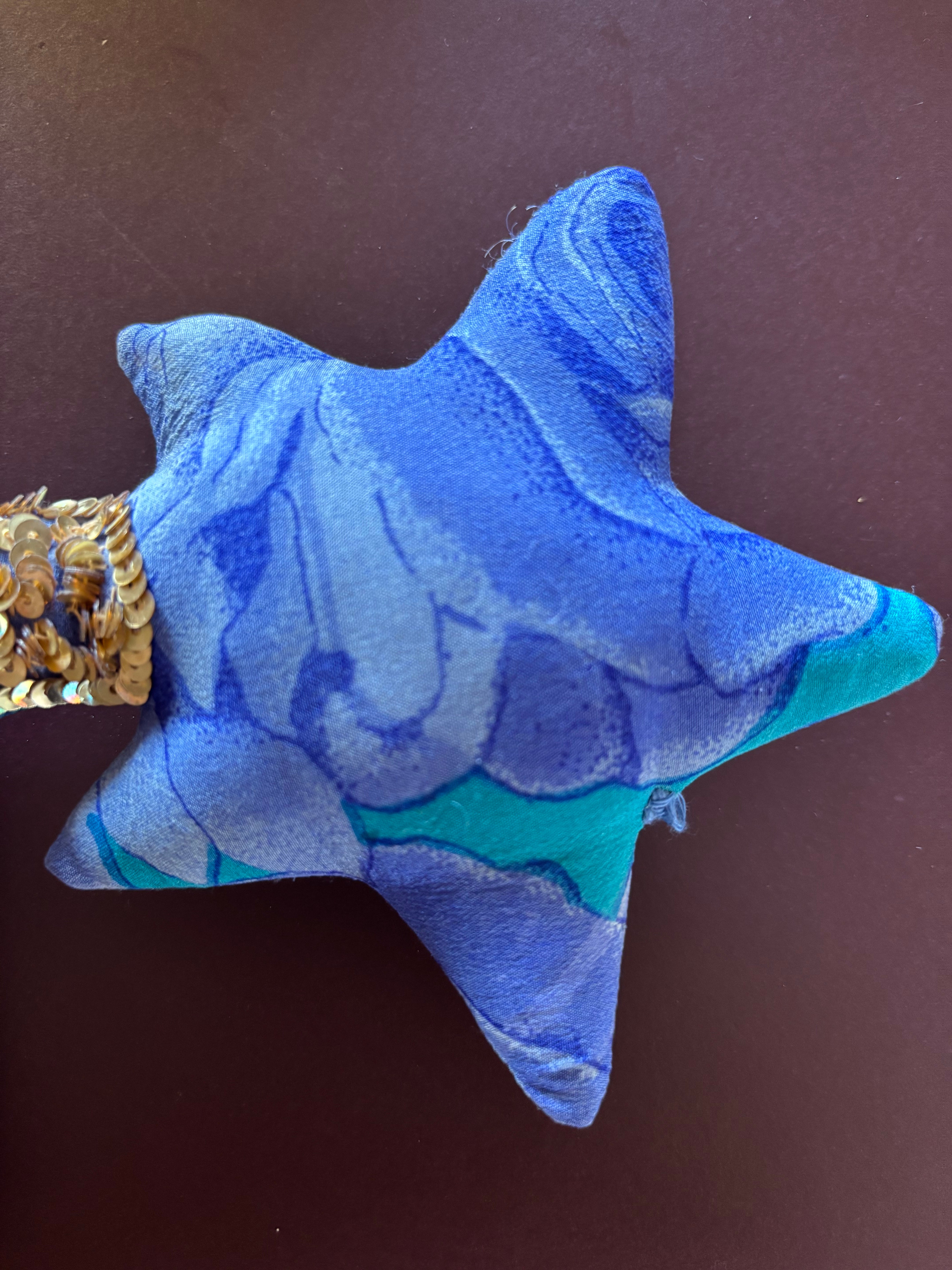 Stjerneskud silke ornamentet er ikke bare en dekoration, men en del af en større vision om at bruge eksisterende tekstiler og minimere produktionen af nye materialer. Med dette ornament bringer du ikke kun skønhed ind i dit hjem, men bidrager også til en mere bæredygtig fremtid.