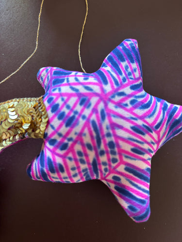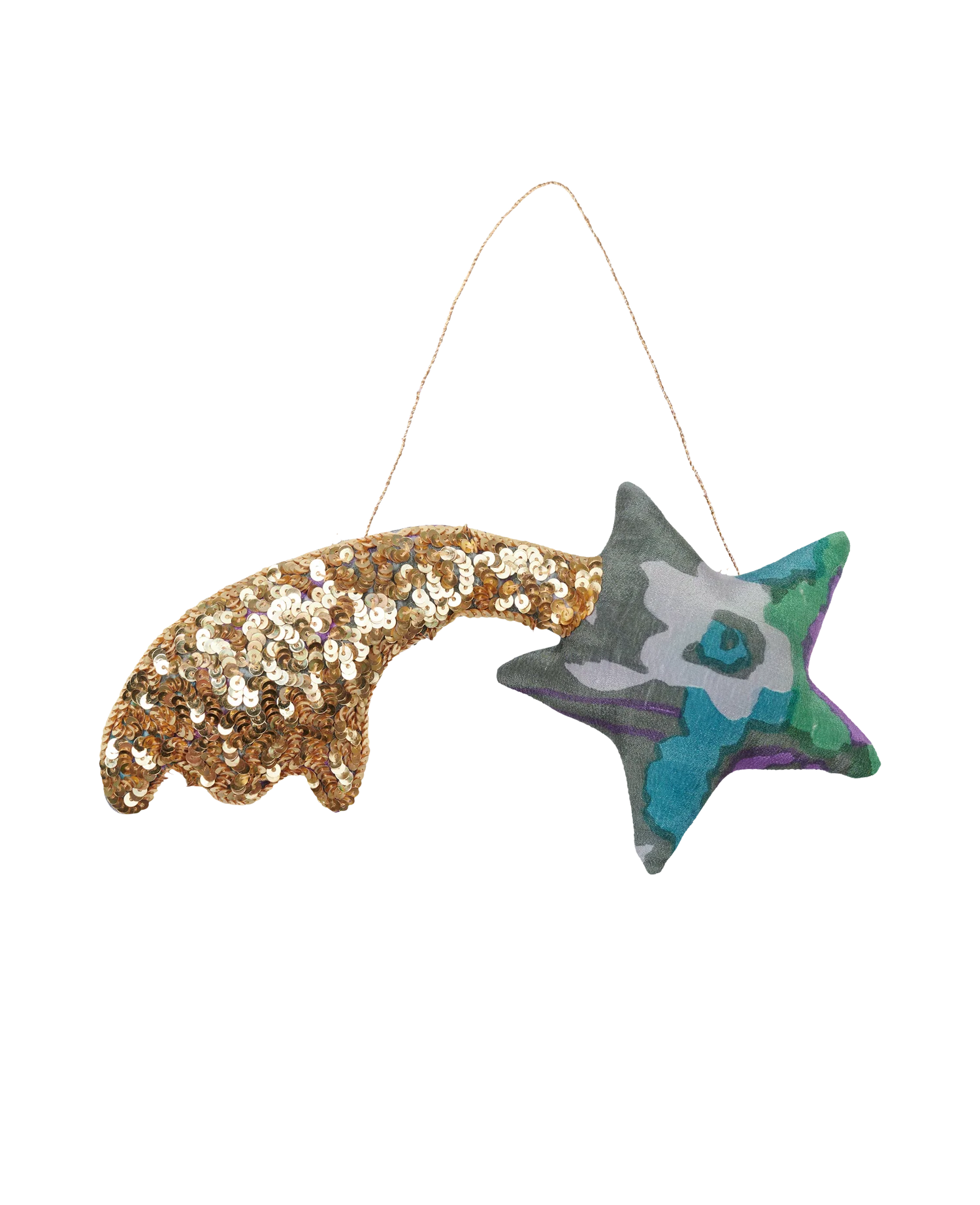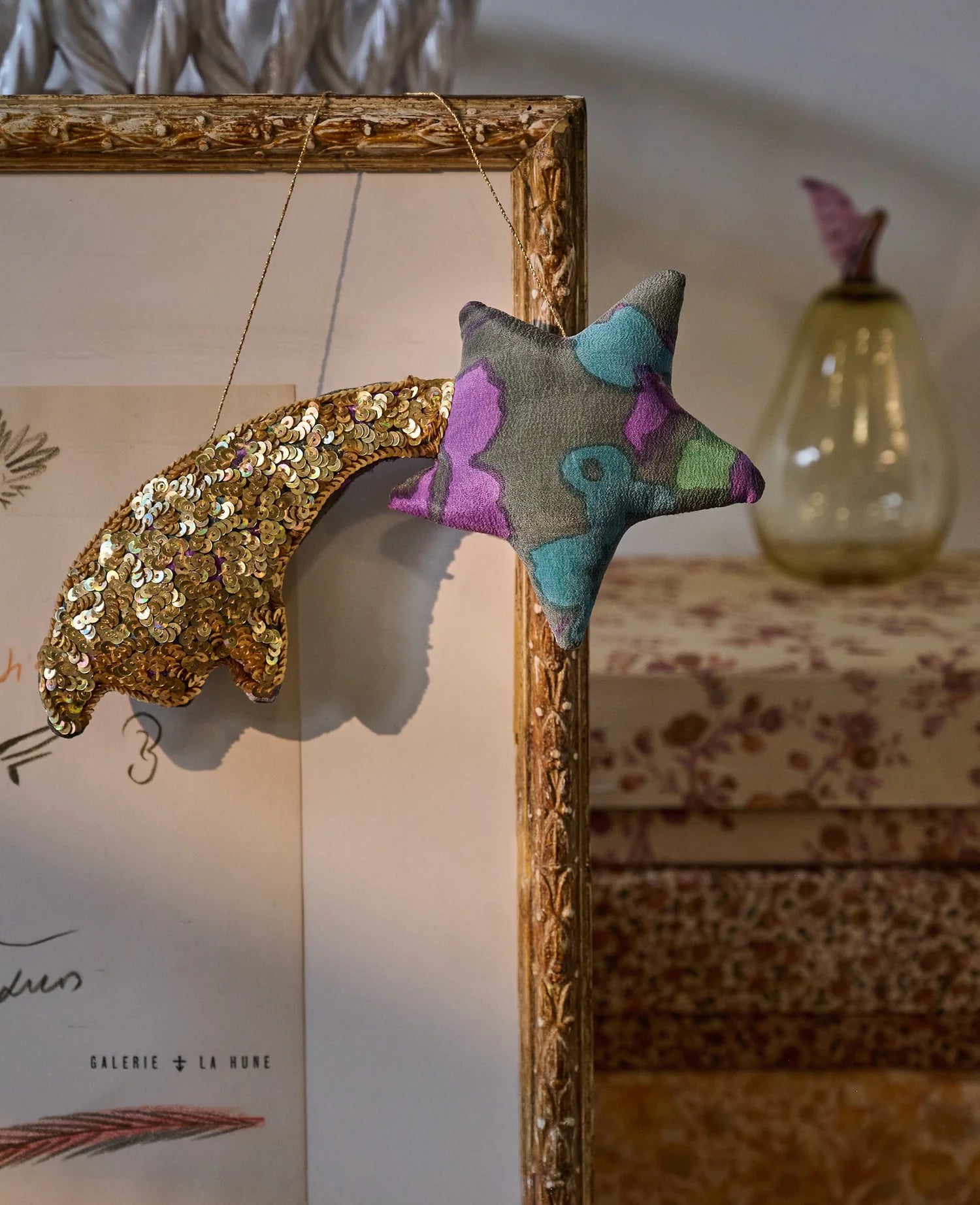 Giv dit hjem et personligt præg med det unikke stjerneskud silke ornament fra Sissel Edelbo. Dette ornament, der er lavet af resterende silkesaris, er ikke bare en dekoration, men en historie fra Indien, hvor hver enkelt stykke bærer præg af dets tidligere liv.