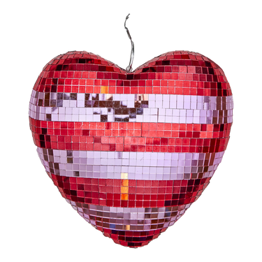 Denna stora hjärtformade discokula från Rice skapar en magisk atmosfär med sina röda och rosa ränder och glittrande yta. Den eleganta formen och den färgglada designen gör discokulan till ett festligt tillskott till vilket rum som helst, där den sprider ett vackert ljusspel på väggar och tak.