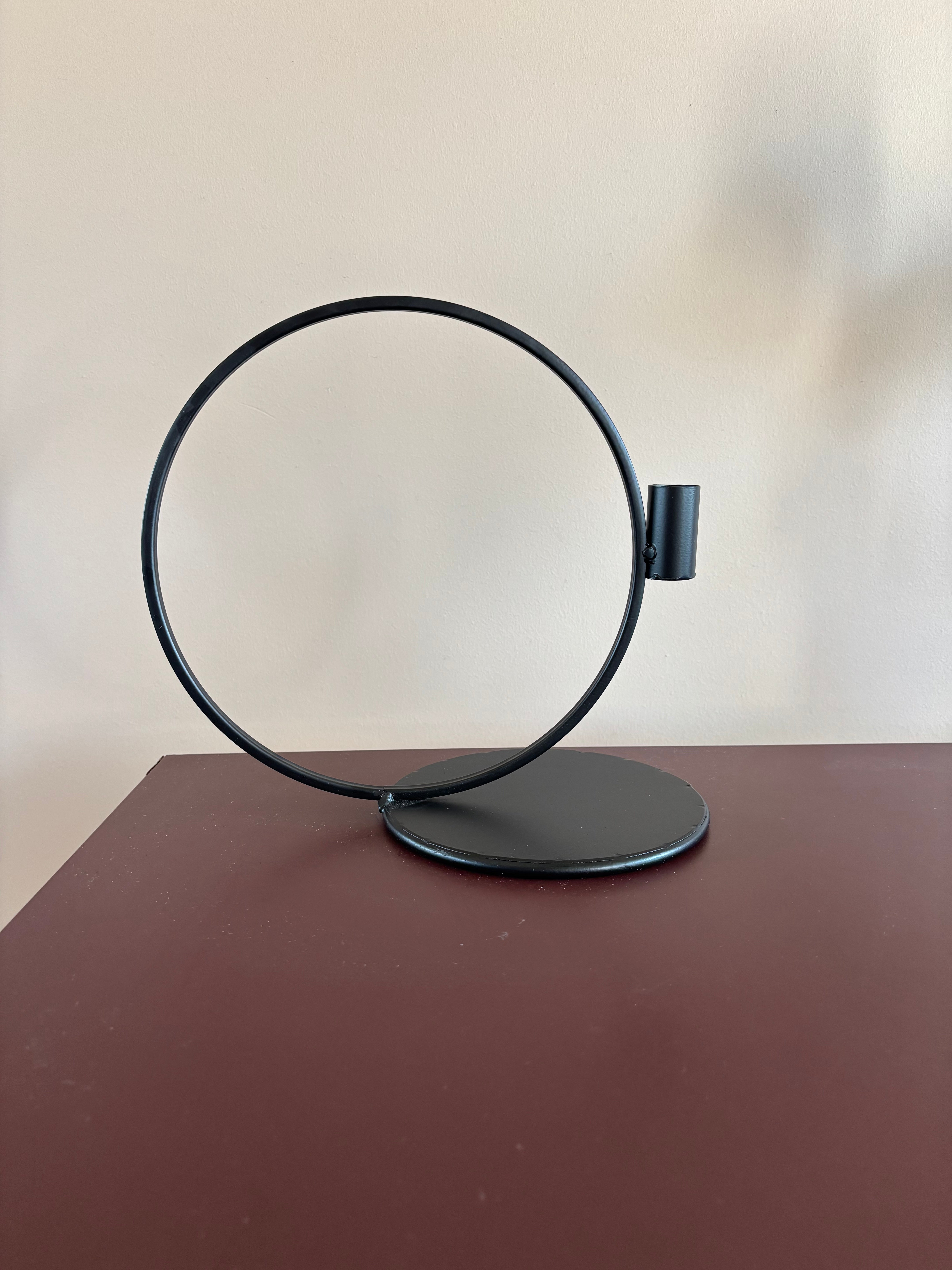 Den svarta metallytan ger ljusstaken ett modernt och sofistikerat utseende som passar både klassiska och moderna inredningsstilar. Den enkla formen gör den mångsidig och lätt att kombinera med andra dekorativa element. Observera att det kan förekomma små ojämnheter i lacken, vilket är en naturlig del av produktens karaktär.
