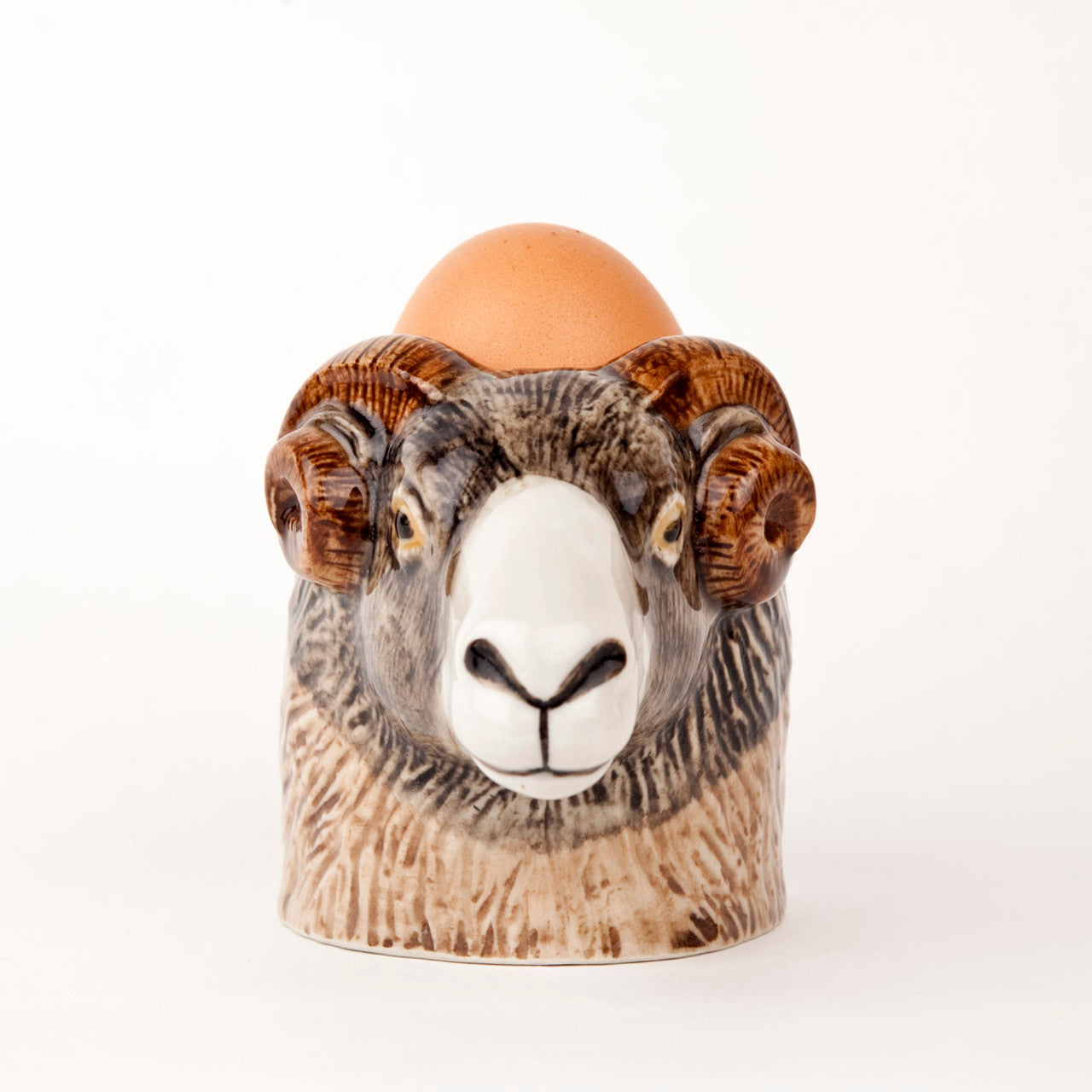Håndmalet gede æggebæger i stentøj til dit perfekte blødkogte æg