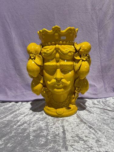Den smukke Sicilianske Testa Di Moro vase emmer af charme og historie. Vasen er i sig selv et stykke kunst, som med sin udsmykning har sit helt eget unikke design. Den unikke Testa Di Moro vase, er fremstillet på baggrund af et ægte stykke siciliansk historie. Designet er derfor blevet et stykke traditionelt siciliansk keramik, som du ikke vil undgå at møde, hvis du rejser en tur til den Sicilianske hovedstad Palermo og slentre ned af de gamle bystræder. Vasen er håndmalet og fremstillet i Italien. Historien og det kulturelle aspekt, vækker liv til designet som tilføjer charme og personlighed. Med de smukke citroner og blade, tapper den smukke keramik vase en anelse ind i den nordiske interiørtrend med frugtkeramik der emmer af italienske, eksotiske vibes. Den smukke Sicilianske Testa Di Moro vase, kan både pynte indendørs i hjemmet og i omgivelser udendørs.