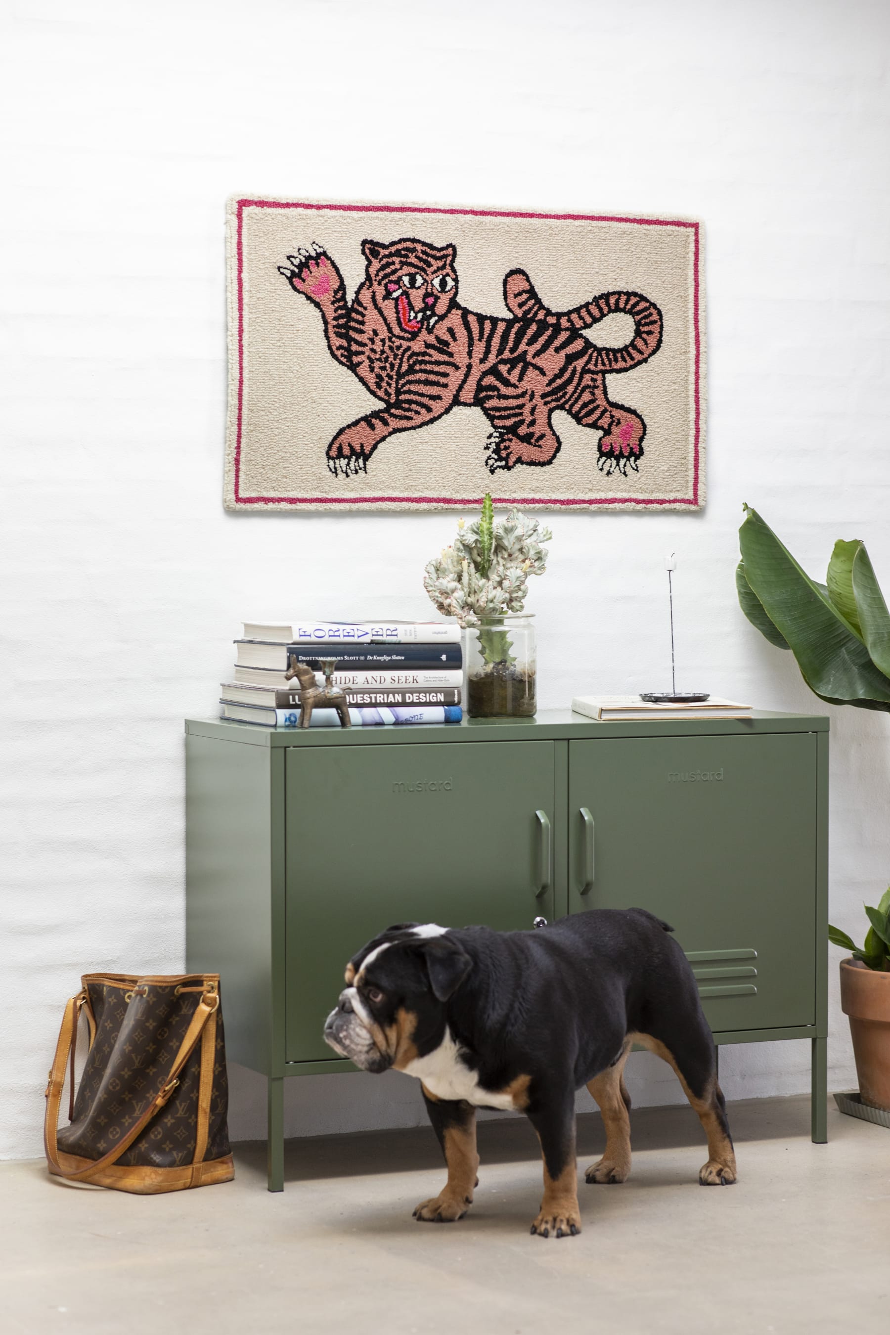 Tiger tæppet fra Bongusta er ikke bare et tæppe; det er en kunstnerisk udsmykning, der bringer liv og karakter til dit rum. Det er skabt med en firkantet ramme vævet ind i motivet, hvilket giver et sjovt og blødt modspil til dine øvrige vægdekorationer og små skatte. Uanset om det hænges op som et vægkunstværk eller bruges på gulvet, vil dette tæppe uden tvivl tiltrække opmærksomhed.