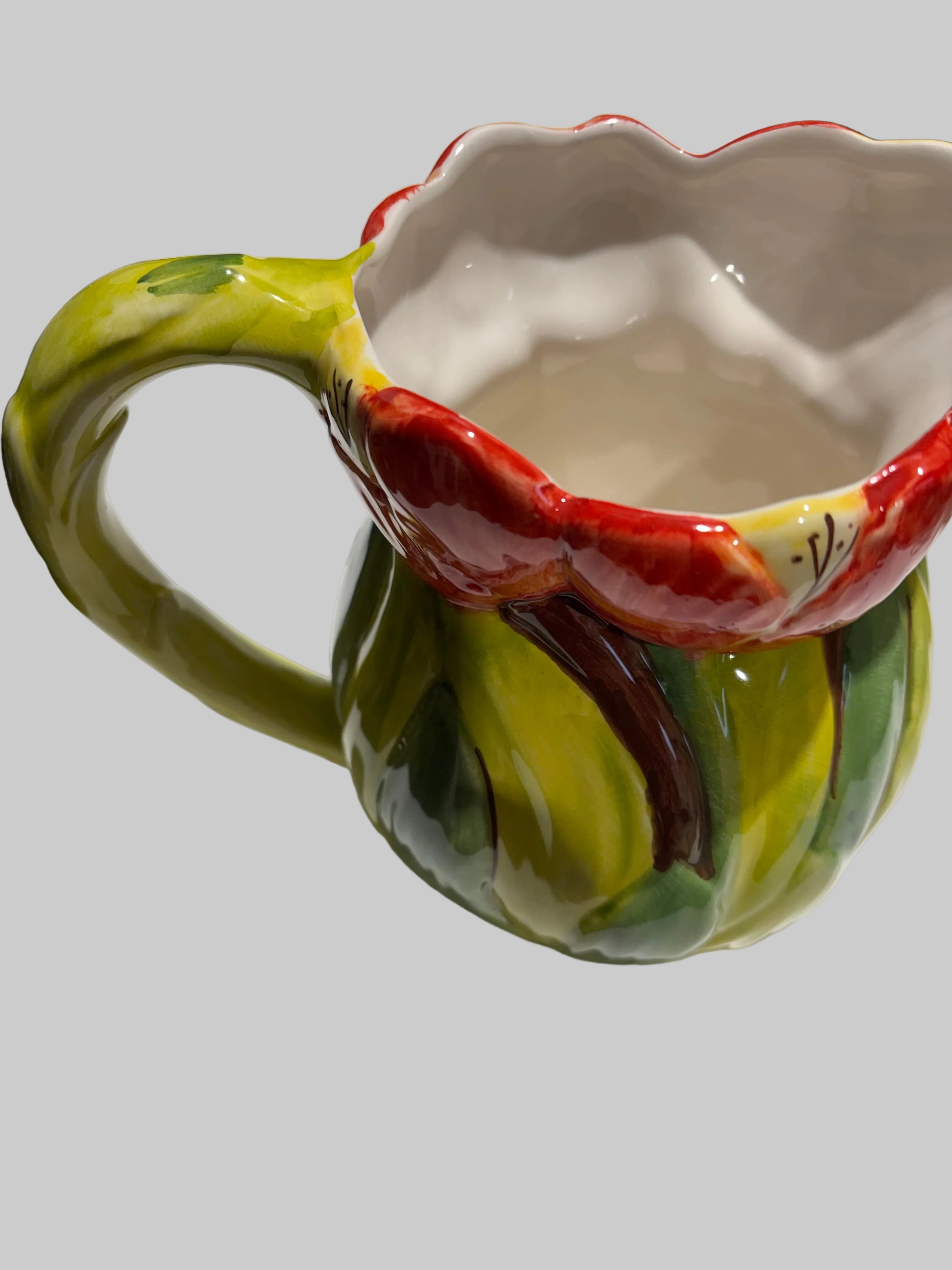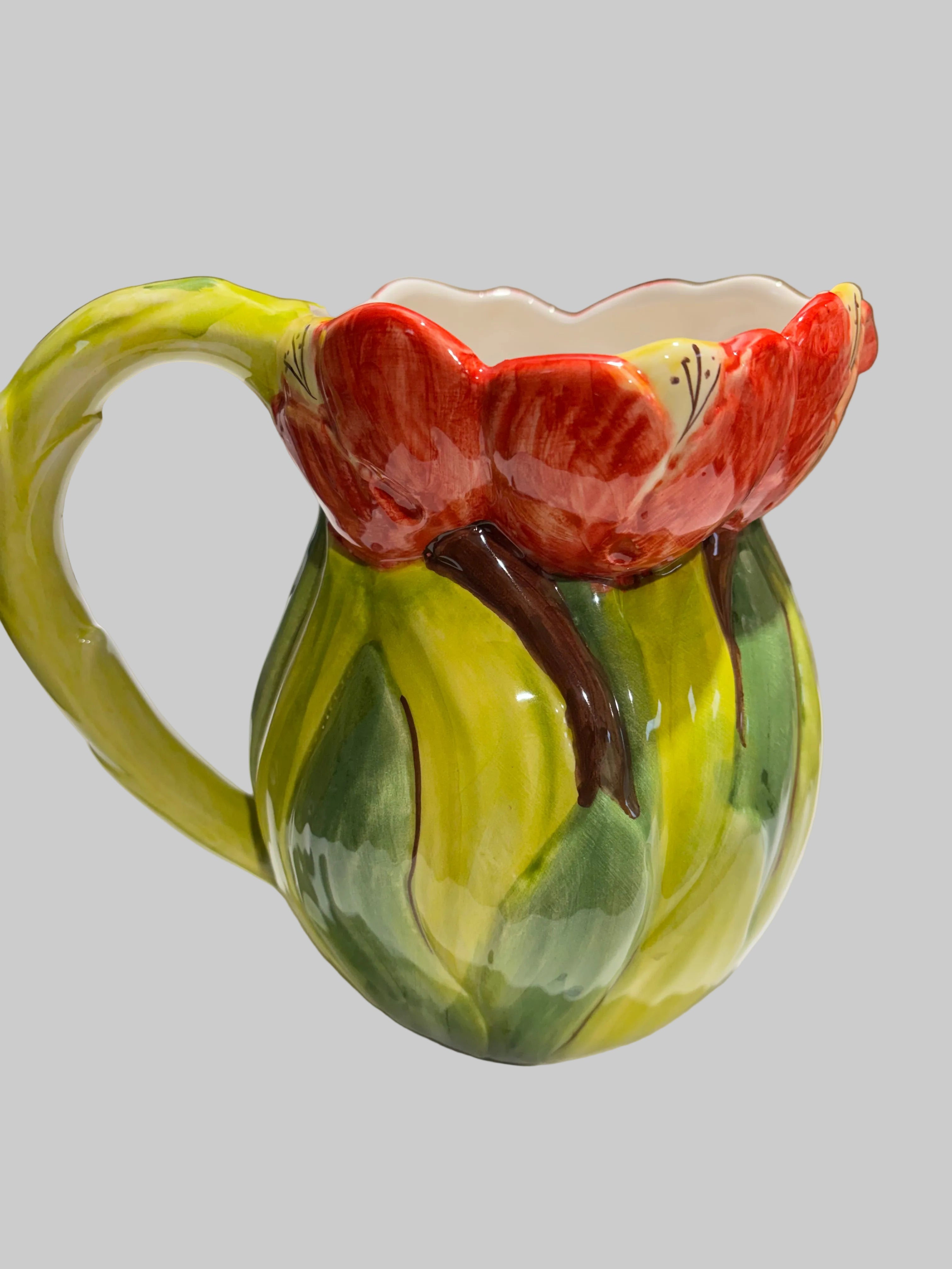 Hvert stykke keramik er håndlavet og håndmalet af dygtige kunsthåndværkere fra Italien, hvilket gør hver kande unik og fyldt med personlighed. Den smukke form, der ligner en buket tulipaner, tilføjer et livligt præg til din indretning.