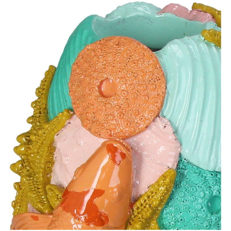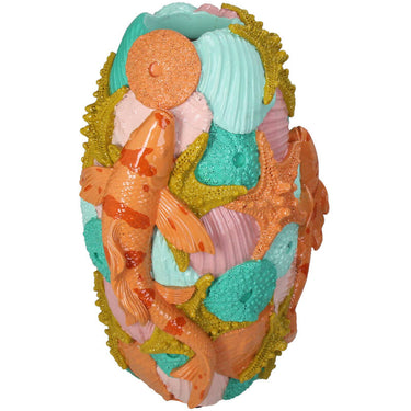 Vasen i form av en färgglad fisk ger liv och glädje till ditt hem. Med sina mått på 20x17x30,5 cm är den perfekt för att ge din inredning ett roligt och lekfullt inslag. Oavsett om du placerar den i vardagsrummet, på matbordet eller i hallen kommer denna vas garanterat att dra till sig blickar.
