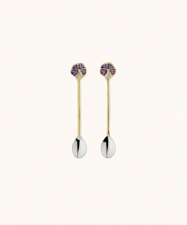 Violet teske sættet fra Doing Goods bringer charme og raffinement til dit bord. Disse små skeer har et håndmalet violet blomsterdesign i emalje på et gyldent messinghåndtag, der gør dem både dekorative og praktiske. Skeens skål er lavet af fødevarevenligt rustfrit stål, hvilket sikrer holdbarhed og funktionalitet.