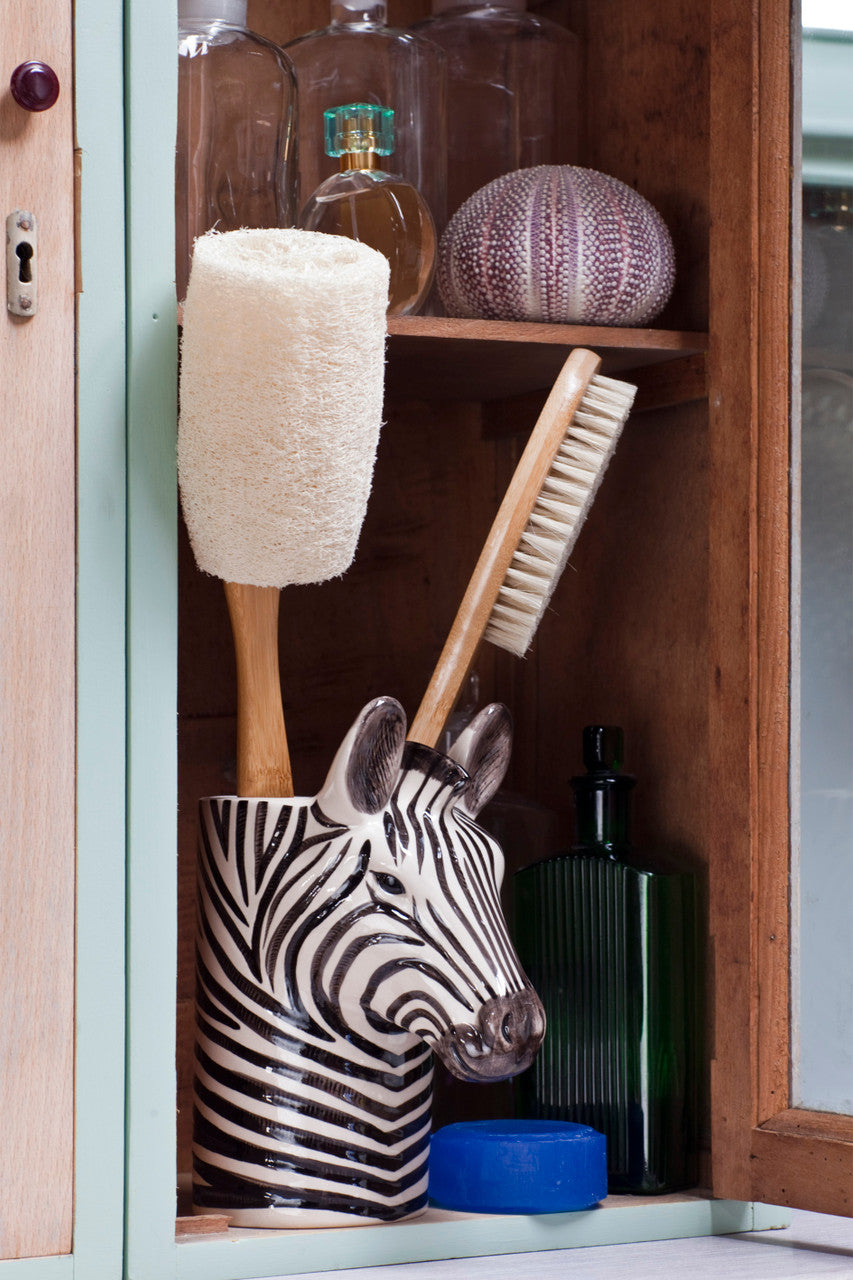 Den vackra Zebravasen från Quail är inte bara en vas, utan ett unikt konstverk som ger liv och färg åt ditt hem. Med sin handmålade finish i ett elegant zebramönster är den idealisk för att visa upp blommor, förvara köksredskap eller som ett dekorativt föremål i vardagsrummet.